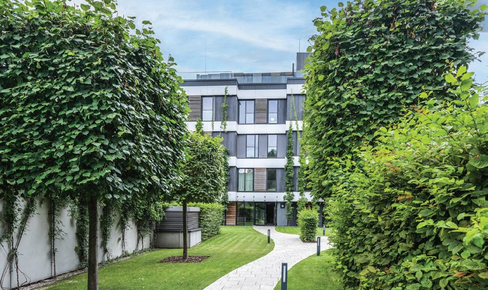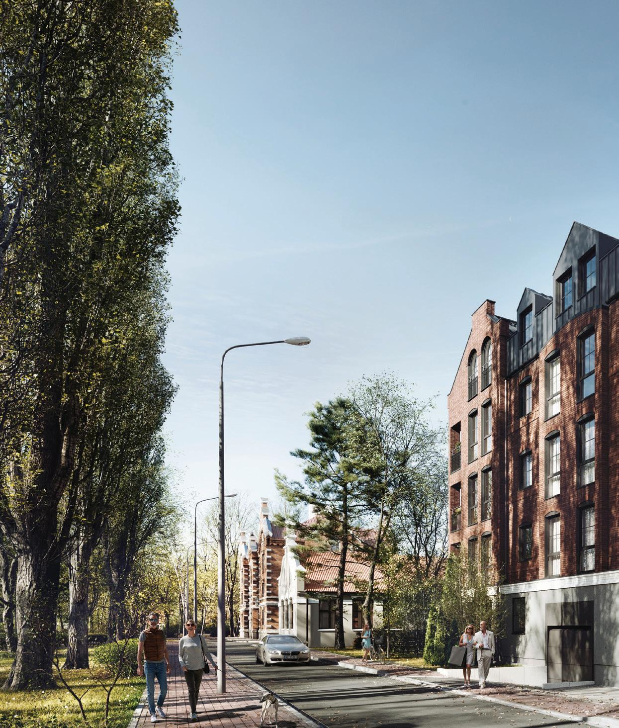 ralne stawy, wśród których wyrastają monumentalne stuletnie drzewa. Z ich potężnych konarów emanują siła i spokój. Krakowski urok odnajdujemy w otaczającej willę zabytkowej zabudowie z początku XX wieku – widzimy czerwone dachówki, starą cegłę – elegancki przykład architektury. Z kolei Łazienki przywodzi tu na myśl parkowy układ przestrzenny, ale będzie się z nimi także kojarzyć efekt przyszłej rewitalizacji zieleni przez Arche – powstaną ogrody, w których sztuka spotka się z przyrodą, a historia z nowoczesnością.