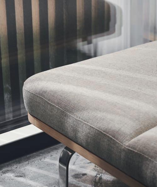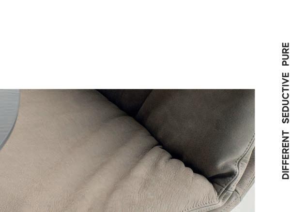 Het nonchalante ontwerp nodigt uit tot ongedwongen relaxen. De zitelementen van kunnen los worden opgesteld, maar ook in een ensemble worden geplaatst, waarbij het cassettestiksel steeds het verbindende kenmerk is. De authenticiteit van deze bank komt het best tot zijn recht in combinatie met bekledingen van hoogwaardig, natuurlijk leer. De dag loslaten, nonchalant wegzakken in de zachte stoffering en genieten van onconventioneel comfort op het hoogste niveau.