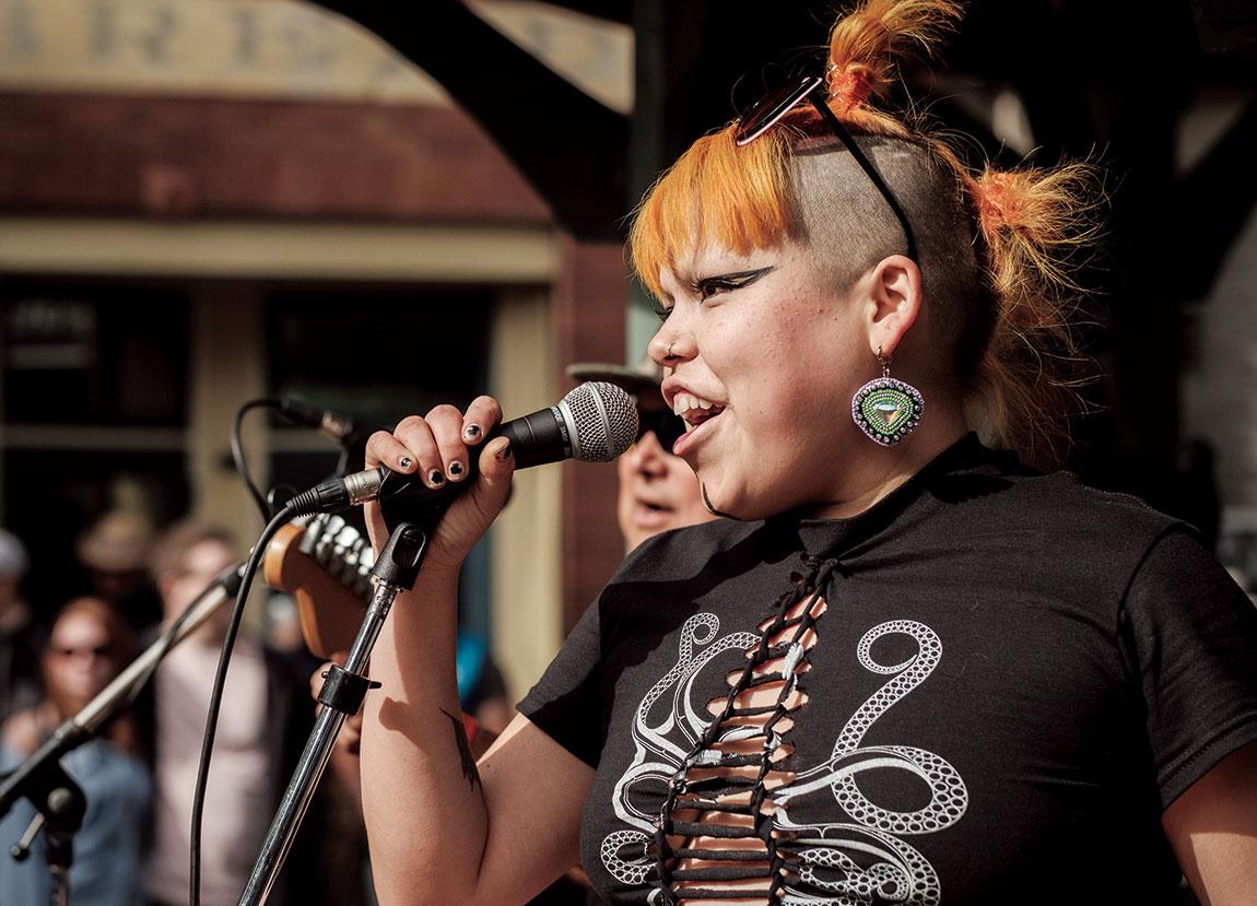 Host Drum Star Child during the first annual South Island Powwow in 2022. Photo: Christian Stewart