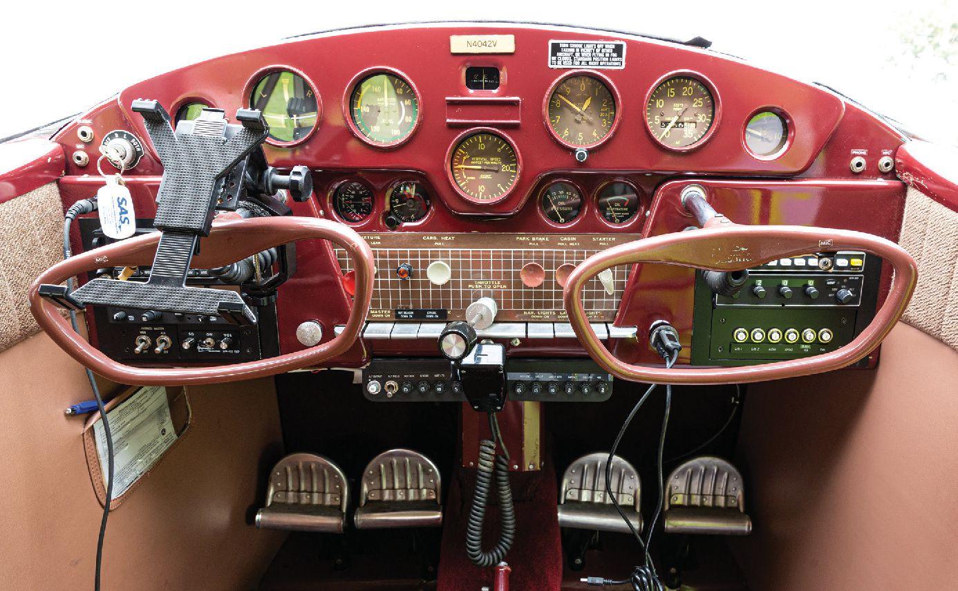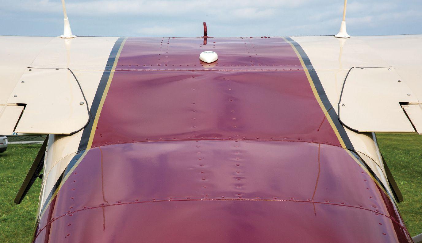 The year 1949 brought major changes in Cessna’s lineup of light aircraft. The complete abandonment of fabric wing covering and the V-strut support are the most obvious changes. The Cessna 170A was introduced with an all-metal wing and a single strut that attached only to the main front wing spar. The wing still had the hinged metal flap, but these were slightly larger and the flap travel was increased to 50 degrees. The wing has no dihedral, so the 170A is often referred to as the straight-wing 170. The other most obvious difference is the addition of the dorsal fin, the same as the 195, to the tail. Internal to the wings were two 21-gallon fuel tanks with a center vent over the cabin. Both of these tanks fed to a fuel selector located between the front seats. This increased the total fuel to 42 gallons, with 37.5 useable. The instrument panel with piano key switches is much the same as the panel in the 1948 170. In 1949, the first year of the 170A, it still had the large fixed-cowl flap on the outlet at the bottom of the cowl. In the following year, 1950, this was changed to the much smaller flap that was used on all subsequent 170 airplanes. Other than this, the Cessna 170A didn’t have any significant changes during its threeyear production run of 1,522 airplanes produced.