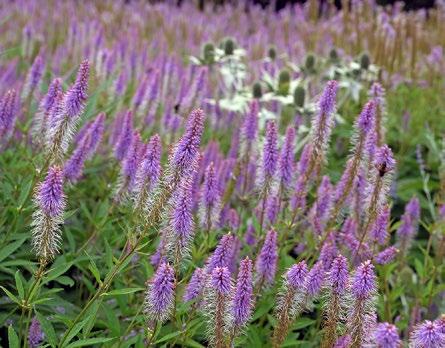 2 Deze sierlijke plant heeft lange, verticale bloeiaren in zacht lila. Veronicastrum virginicum ‘Fascination’ (ereprijs) staat graag aan de waterkant, maar kan ook prima in een natte border. Hij is ook prachtig om te combineren met tal van andere borderplanten, of bijvoorbeeld naast grote kattenstaart.
