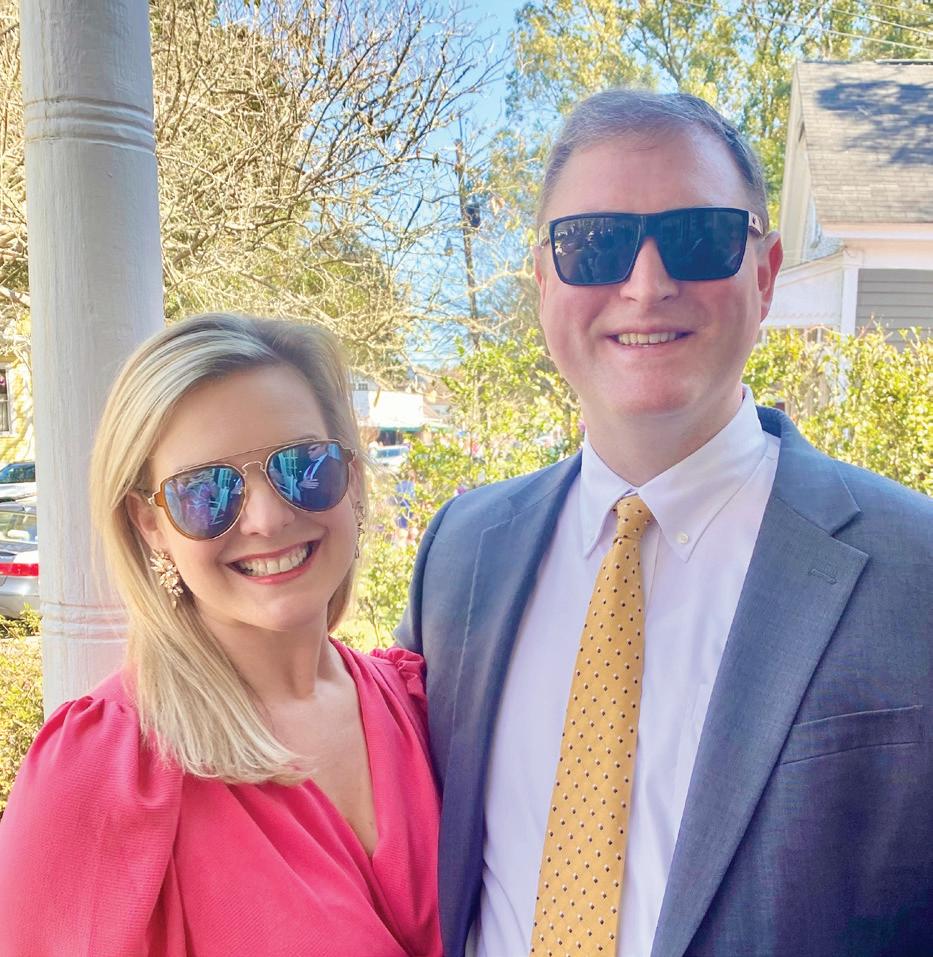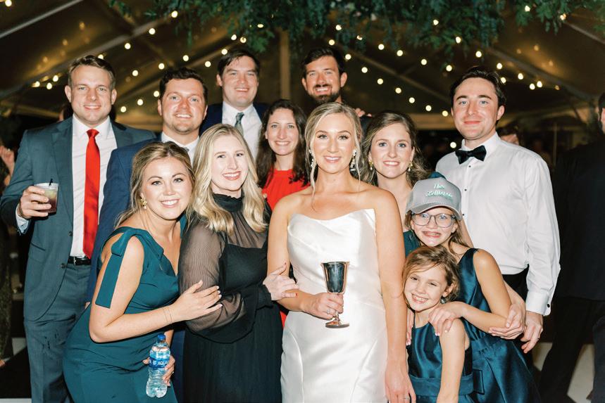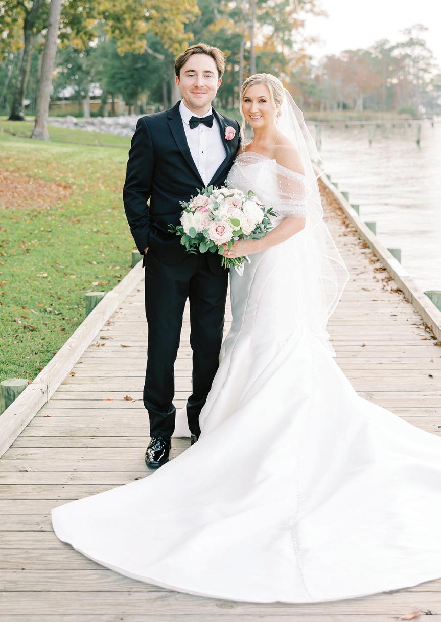 The couple met in April of 2021 at mutual friends’ wedding—Kathleen sitting on the bride’s side, Phillip on the groom’s. “We’d actually met a few days before the wedding,” Kathleen says. “Phillip kept trying to get my attention, but I wasn’t returning it until the night of the wedding. Phillip asked me to dance, and I said yes. By the end of the night, we had our first date planned. The next Thursday, we met at El Papi in Mobile.”