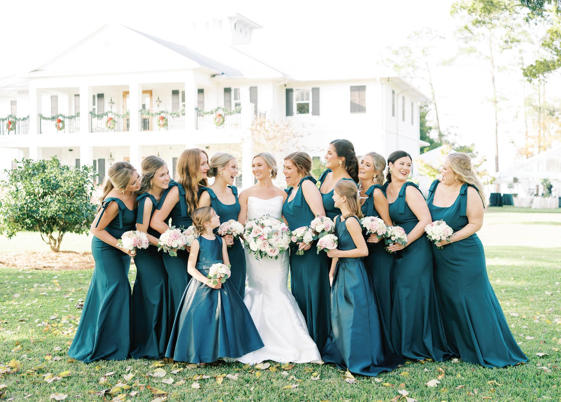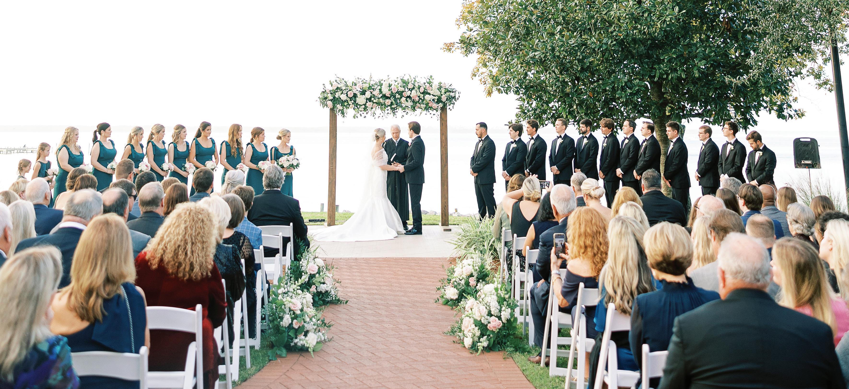 After more than a year of planning, Kathleen walked down the aisle at the Coastal Arts Center of Orange Beach wearing a strapless Mikado Silk gown with a mermaid silhouette and a fingertip length veil with horsehair trim, topped off with a tulle cape for the ceremony. Surrounded by their loved ones, the couple stood at the altar with their 11 bridesmaids and 12 groomsmen to exchange their vows. After being pronounced married, the newlyweds joined their guests for an onsite reception, where they dined on a delicious array of food, including an incredible oyster bar, and hit the dance floor.