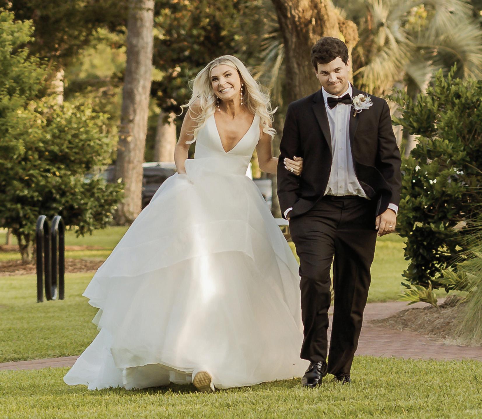 One year and four months later, on May 27, 2023, Grayson walked down the aisle at the Coastal Art Center in Orange Beach, wearing a stunning A-line silhouette gown with a fitted bodice and plunging neckline flaring out into a full tulle skirt. “Austin and I did not do a first look, because I wanted to get a true reaction from him when I walked down the aisle,” Grayson notes.