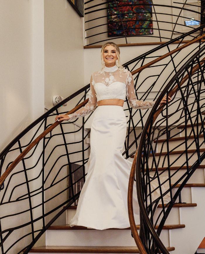 This second ceremony was for the rest of their loved ones, to celebrate with them in a big way. After walking back down the aisle together, Austin and Grayson joined their guests for an on-site reception that turned into quite the party. “Austin and I had a dance competition, and I break-danced on my head!” laughs Grayson, who had changed into a dance-friendly two-piece dress for the reception.