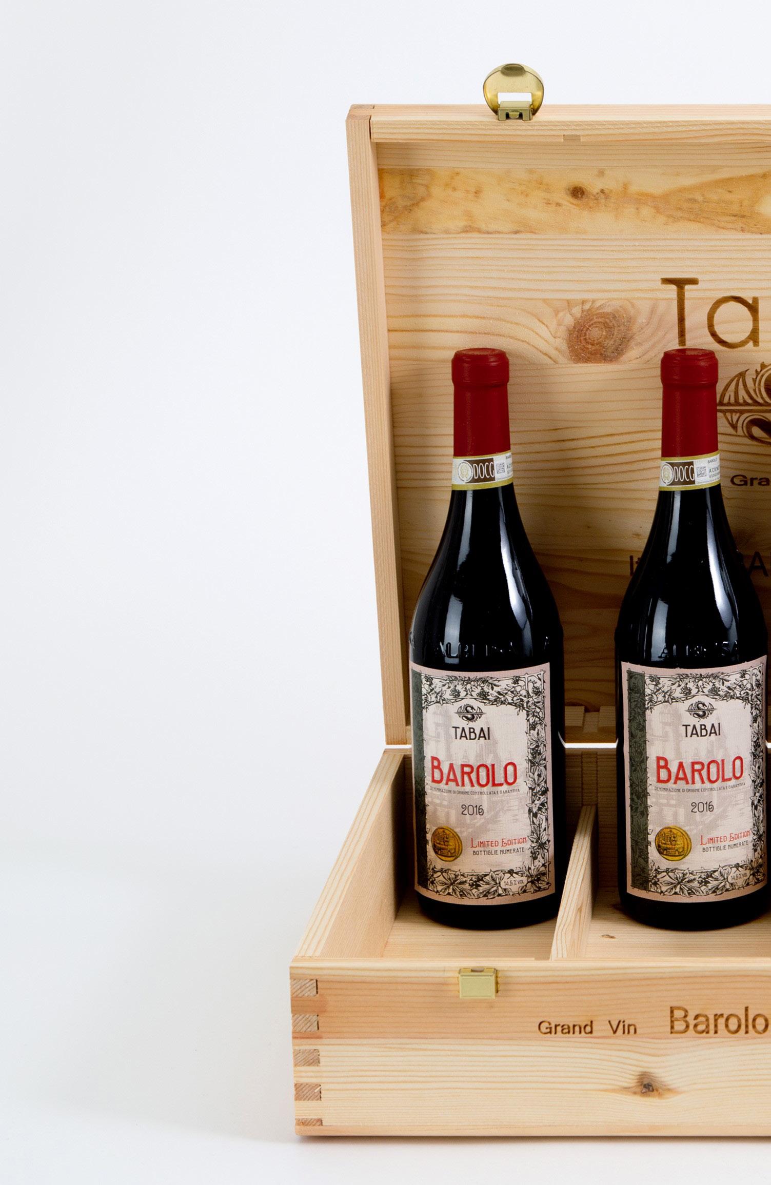 Quattro bottiglie di TABAI Barolo 2016. Edizione Limitata 186/8888. In cofanetto originale.
