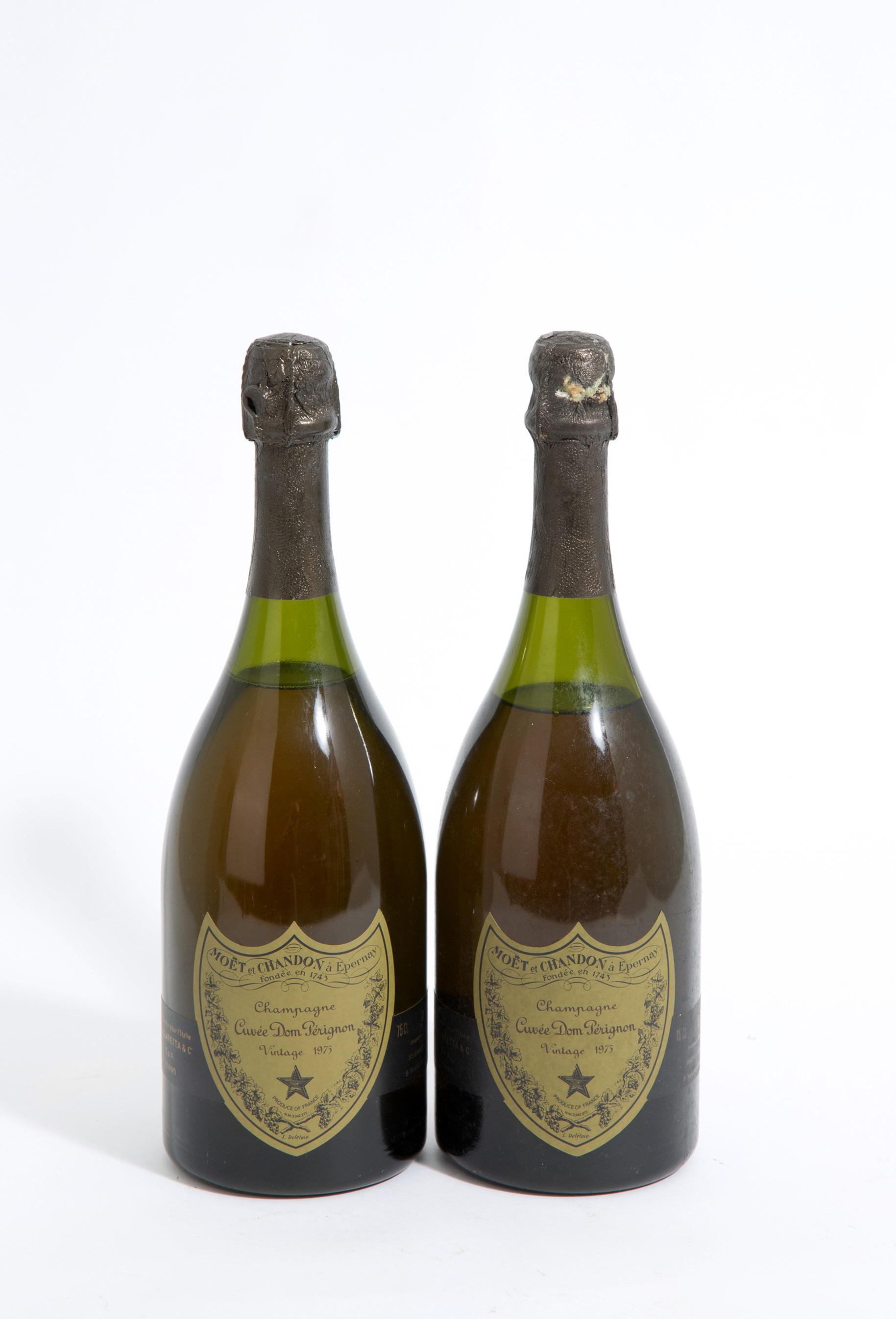 Due bottiglie di Champagne Dom Perignon Vintage 1975. B.A: 2.500 € Val.: 400/600 €