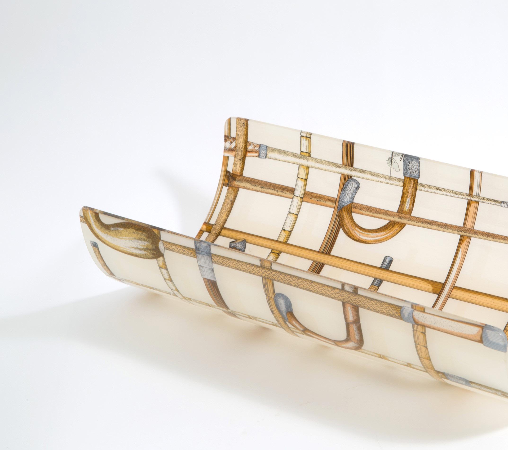 Centrotavola in plexyglass raffi gurante “BASTONI”. Produzione FORNASETTI. Firmato. 15x50x28 cm ca. B.A: 100 € Val.: 200/300 €