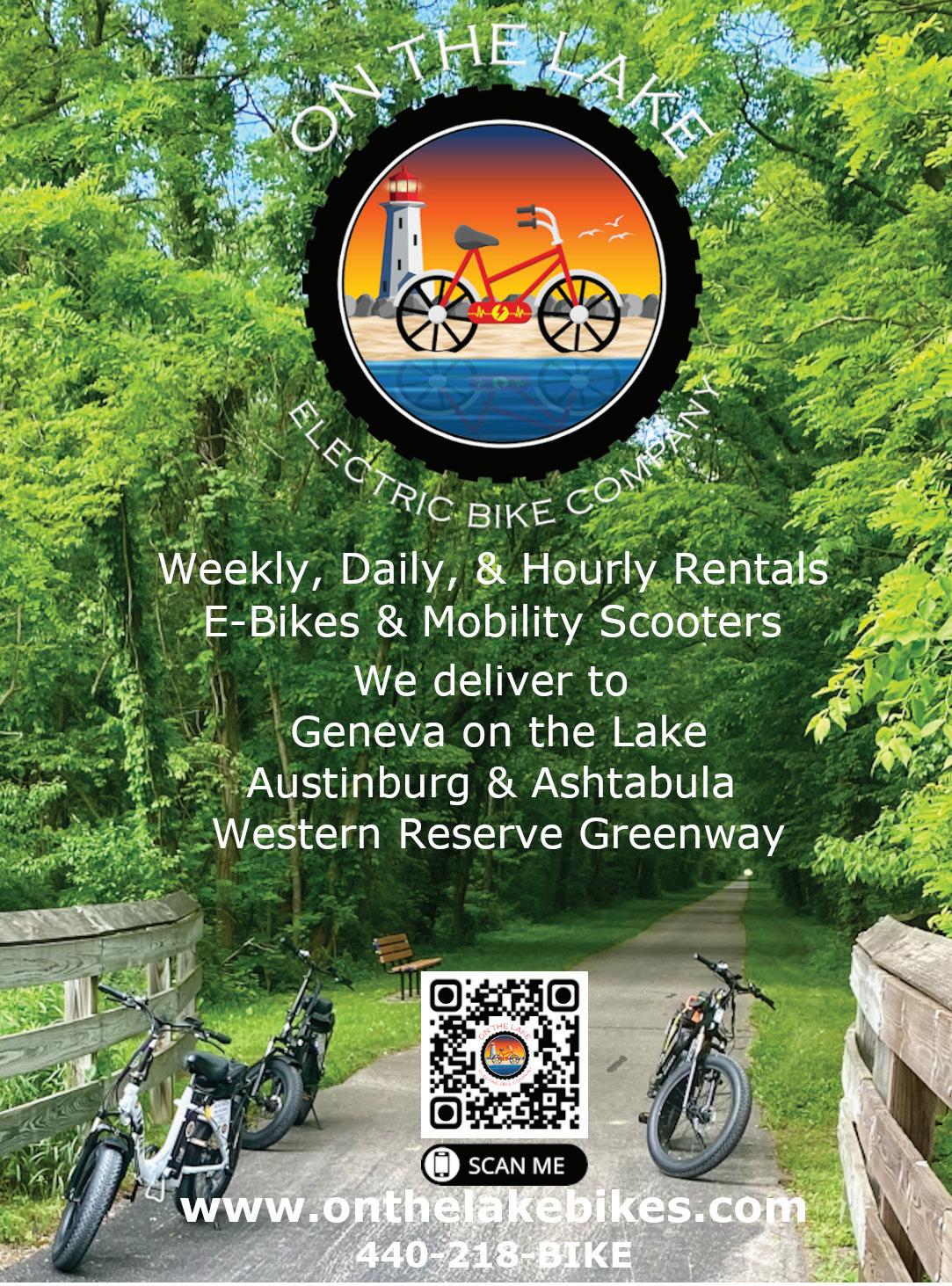 Sunset Transportation is the main taxi service for Geneva-on-the-Lake. Call 440-855-5314 to schedule pick-up. Bicycle rentals are available at multiple locations. Ride along the 2-mile trail in the Genevaon-the-Lake State Park or cycle down to the Geneva Township Park.