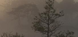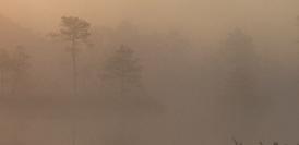 Dunkle Nächte mit sternenklarem Himmel und Meteoritenschauern, Morgennebel über dem Moor