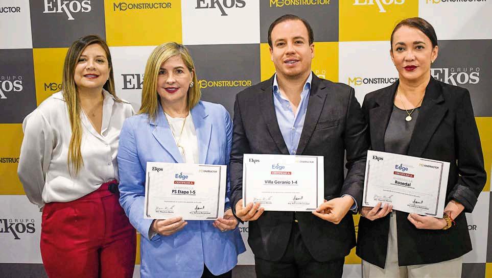 La promotora inmobiliaria Ambiensa recibió tres certificados de Reconocimiento en los Premios EDGE, que se cumplieron en el marco de la feria Expoconstrucción 2023, gracias a sus procesos amigables de construcción y acciones sostenibles en las urbanizaciones Rosedal, Villa Geranio y Paseo del Sol.