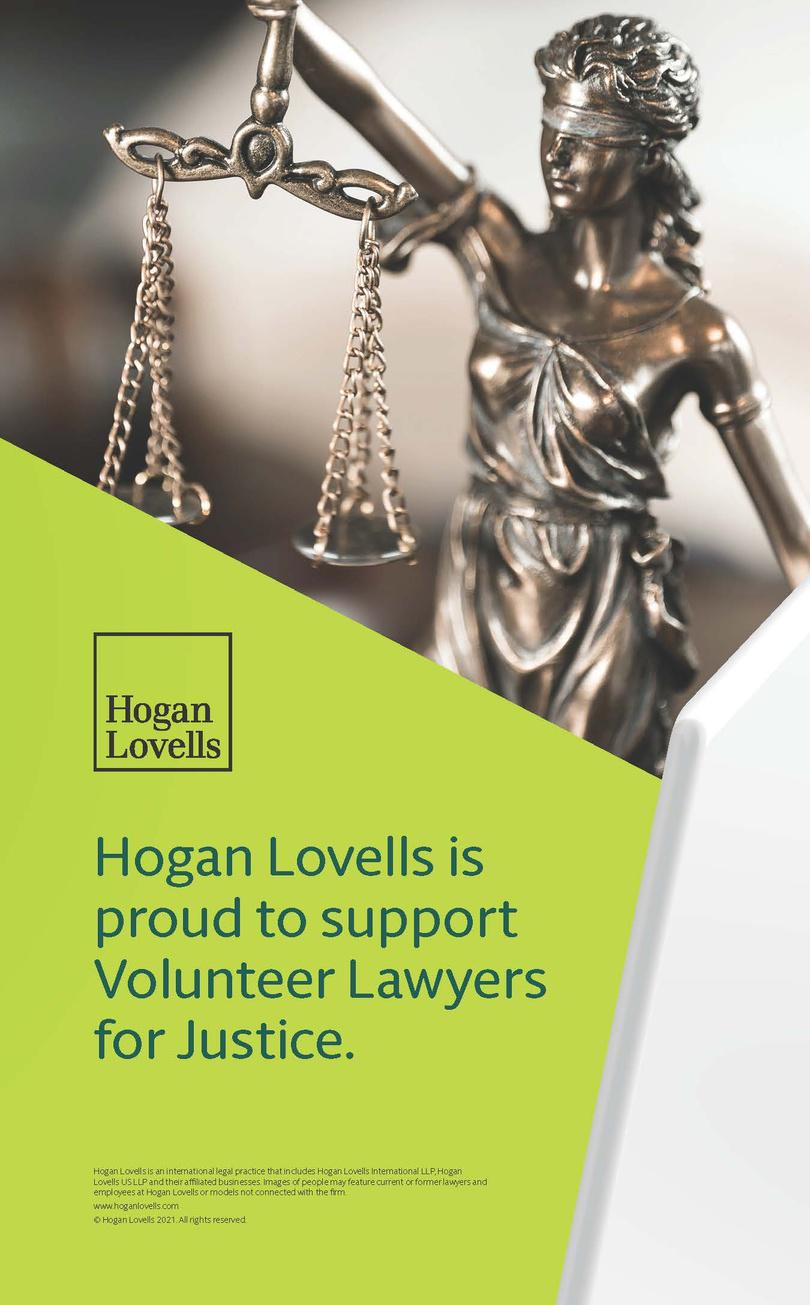 Baker McKenzie is proud to support the Volunteer Lawyers for Justice. bakermckenzie.com © 2023 Baker McKenzie All rights reserved Baker & McKenzie International is a global law firm with member law firms around the world. In accordance with the common terminology used in professional service organizations, reference to a “partner” means a person who is a partner or equivalent in such a law firm. Similarly, reference to an “office” means an office of any such law firm. This may qualify as “Attorney Advertising” requiring notice in some jurisdictions Prior results do not guarantee a similar outcome