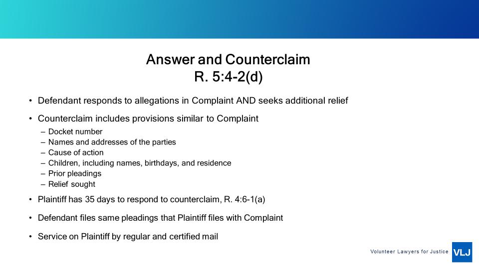• If Defendant files Counterclaim, Plaintiff may file an Answer to Counterclaim within 20 days