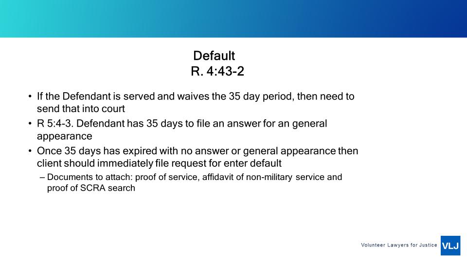 • Petitioner files a Request for Entry of Default, a Certification of Non-Military Service, proof of nonmilitary service and proof of service