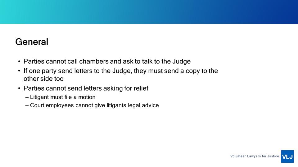 You are responsible for meeting ALL time deadlines in your legal matter unless instructed otherwise by VLJ or a volunteer attorney.