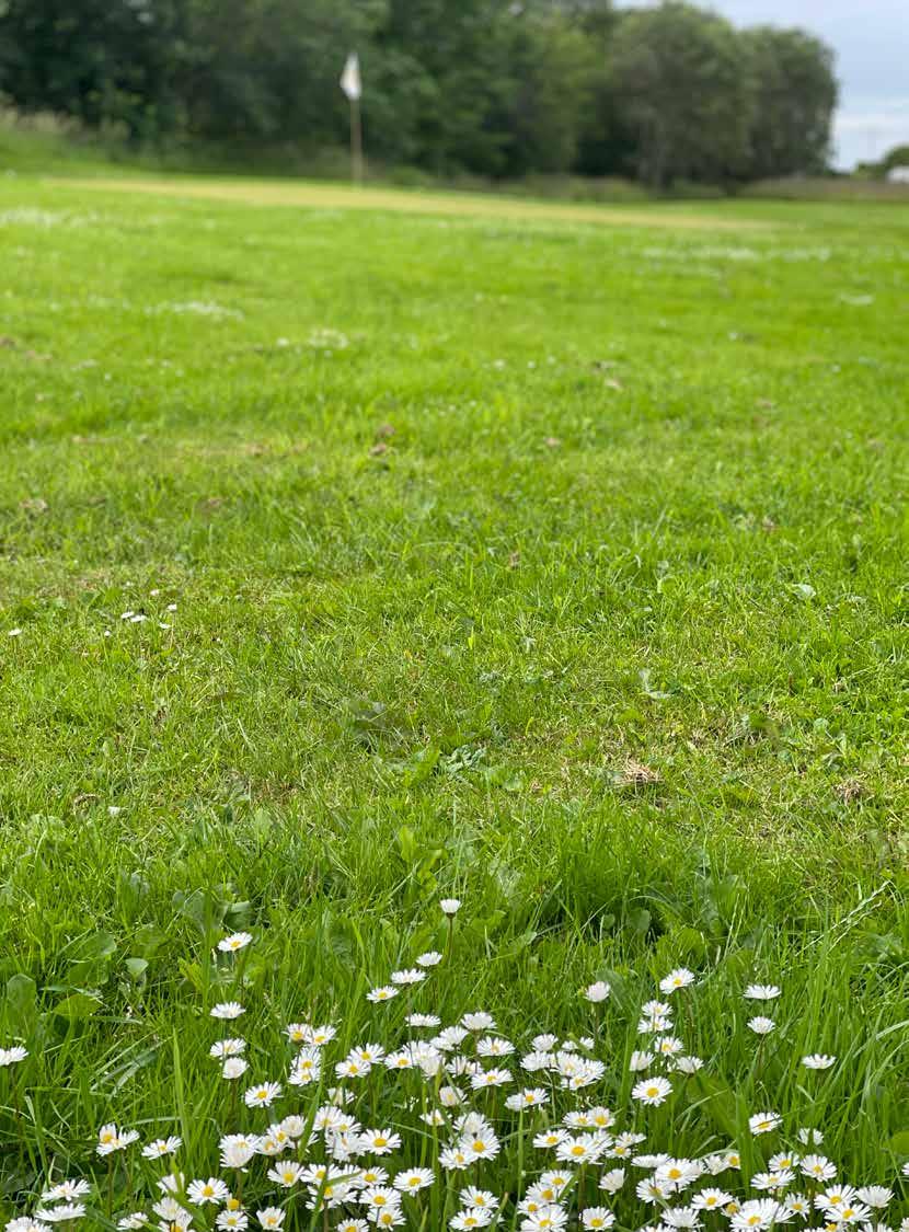 Golfbanen til Ålesund golfklubb er rett utenfor stuevinduet og her spilles det sommer og vinter.