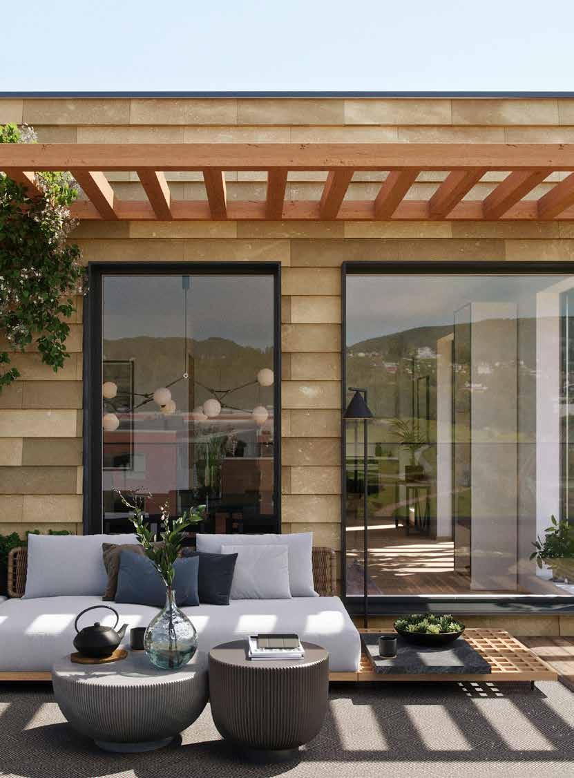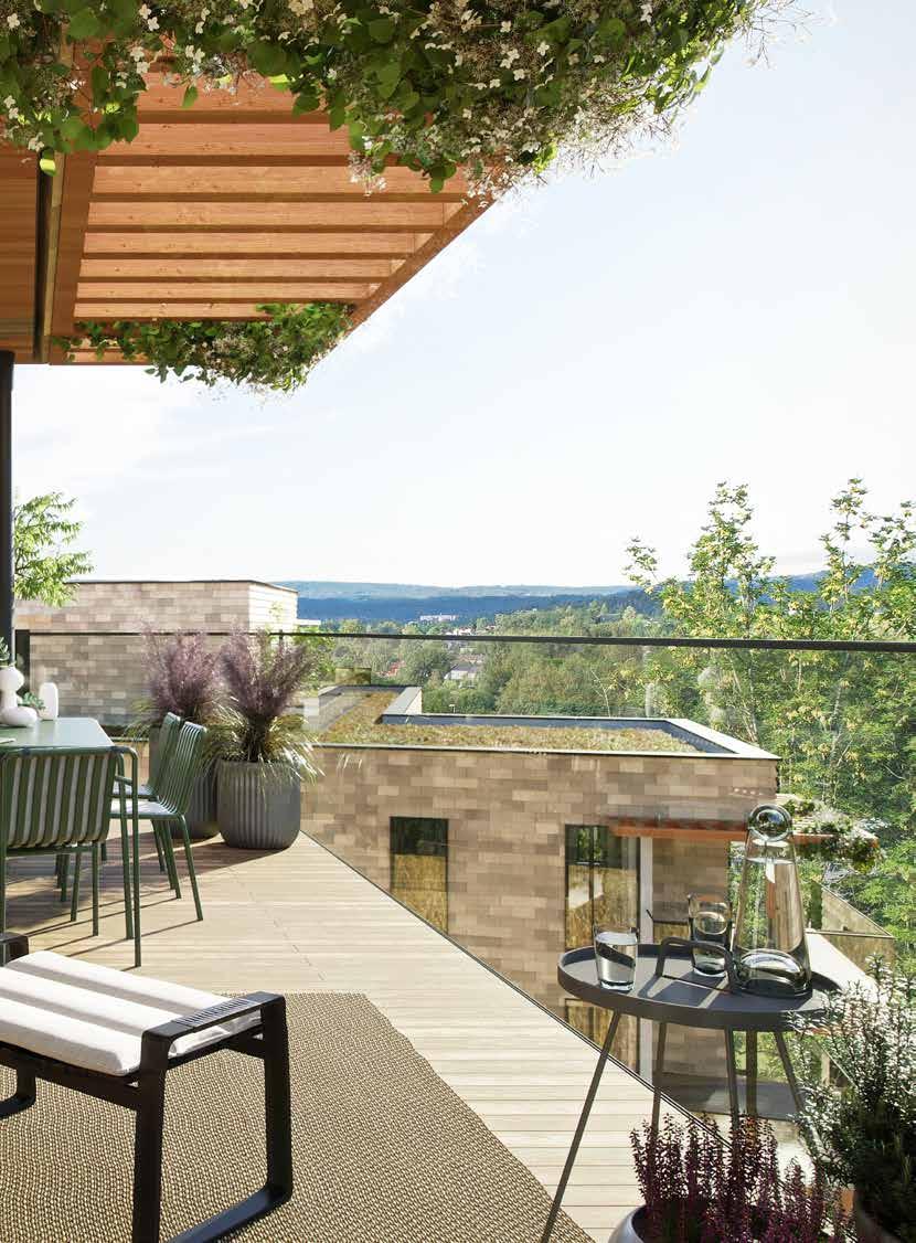Her er alt fra tekniske og estetiske løsninger, som vindu- og dørplassering, siktlinjer og romforløp til utforming av kjøkken, tenkt ut med den største omhu. Materialvalg bestående av Covertegl kombinert med tre i spileverk samt pergolaer vil gi et eksklusivt særpreg til prosjektet. I tillegg er plassering av leiligheter i forhold til hverandre viktig, med tanke på sol/lysforhold og innsyn.