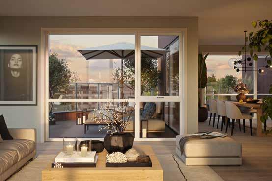 Alle får luftige balkonger, og toppleilighetene får også store private takterrasser med helt optimale sol og utsiktsforhold. Her