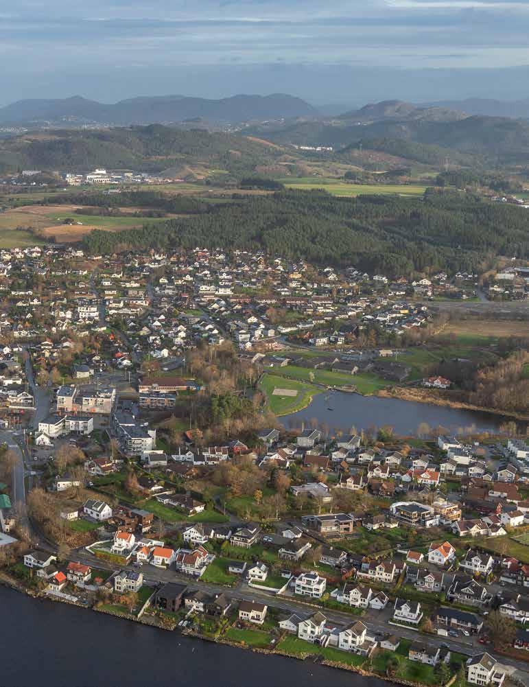 Mange varierte, fleksible planløsninger, og toppleiligheter med private takterasser og utsyn over Frøylandsvatnet.
