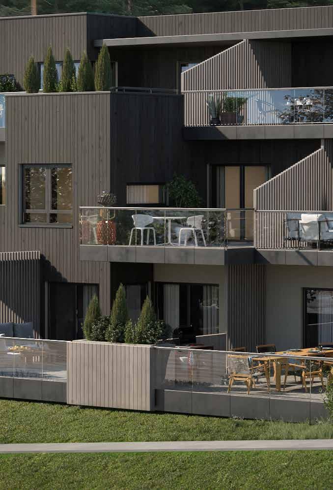 Alle leilighetene får romslige sydvendte private uteplasser, mens toppleilighetene får ekstra store terrasser hvor deler vil bli overdekket for å kunne nyte uteplassen både lengre og i ”all slags vær”.