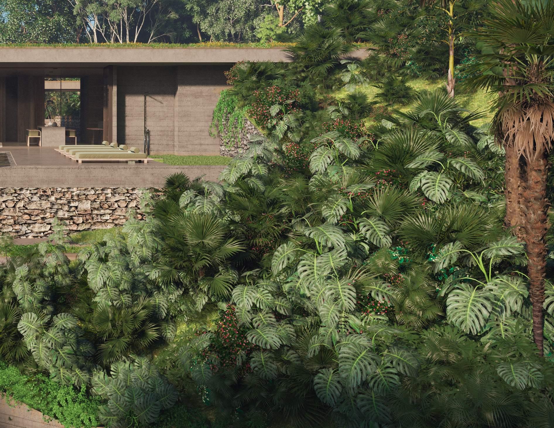 01 KITCHEN + DINNING + LIVING 86.10 M2 01 GARDEN 77.00 M2 02 PANTRY + STORAGE 5.00 M2 03 LAUNDRY 5.40 M2 04 POOL + DECK LOUNGE 83.70 M2 05 S.S. 4.00 M2 06 BEDROOM 01 19.10 M2 07 SHARED BATHROOM 9.40 M2 08 BEDROOM 02 19.10 M2 09 MASTER BEDROOM 24.10 M2 10 MASTER BATHROOM + CLOSET 19.00 M2 11 CIRCULATION 25.80 M2
