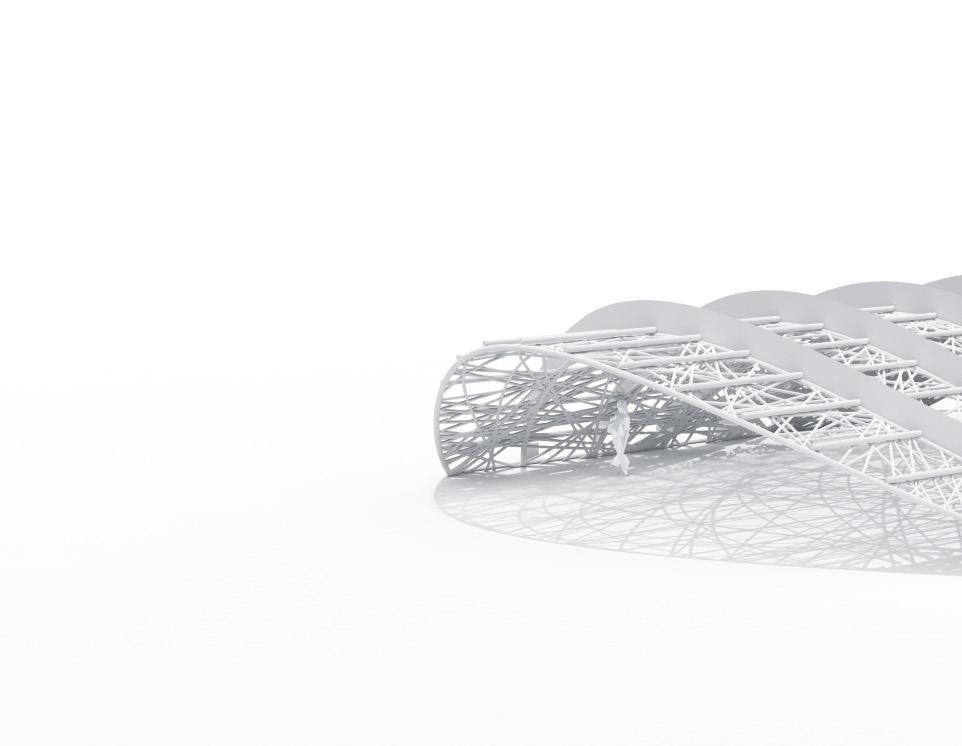 Softness shapes take the access as a natural and shaded tunel. Its structure is highlited on the outside and the inside to make a mix with softness and hardness and an organic and vibrant set of shapes and forms.