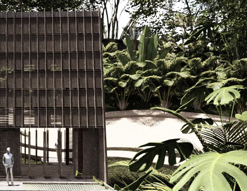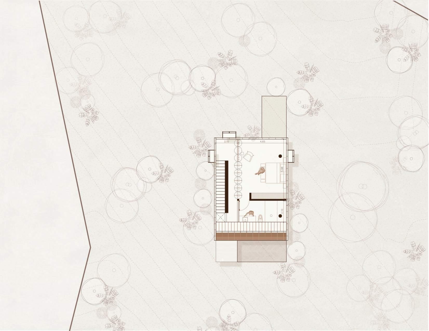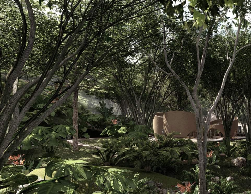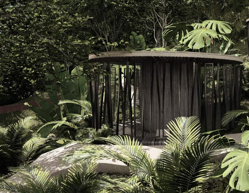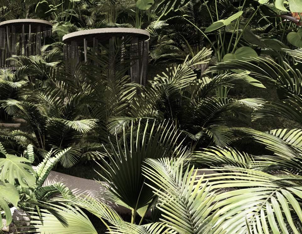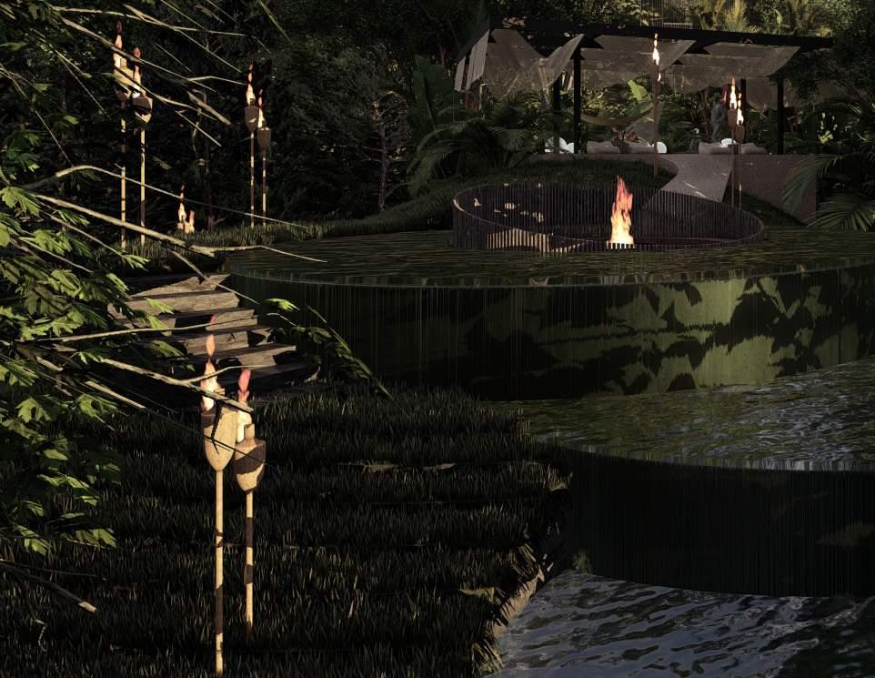 The project explores the concept of grounding ourselves through nature by emphasizing the interconnectedness and shared experiences among different ecosystems. It seeks to reconnect individuals, such as visitors, residents, and temporary occupants, with their own essence through the various approaches of nature while maintaining a sense of simplicity. These approaches manifest as diverse landscapes that share a common core and evolve as one journeys through the site.