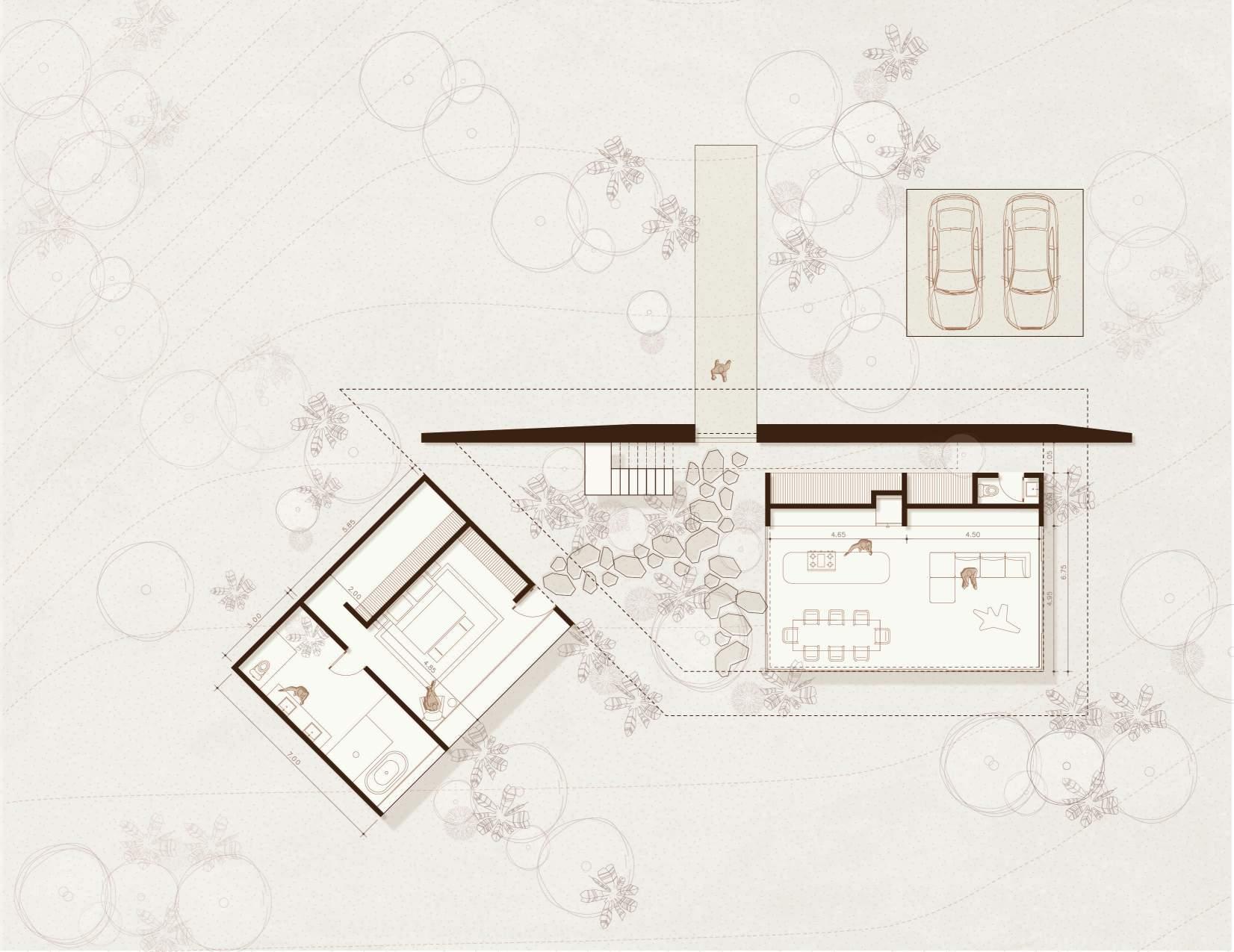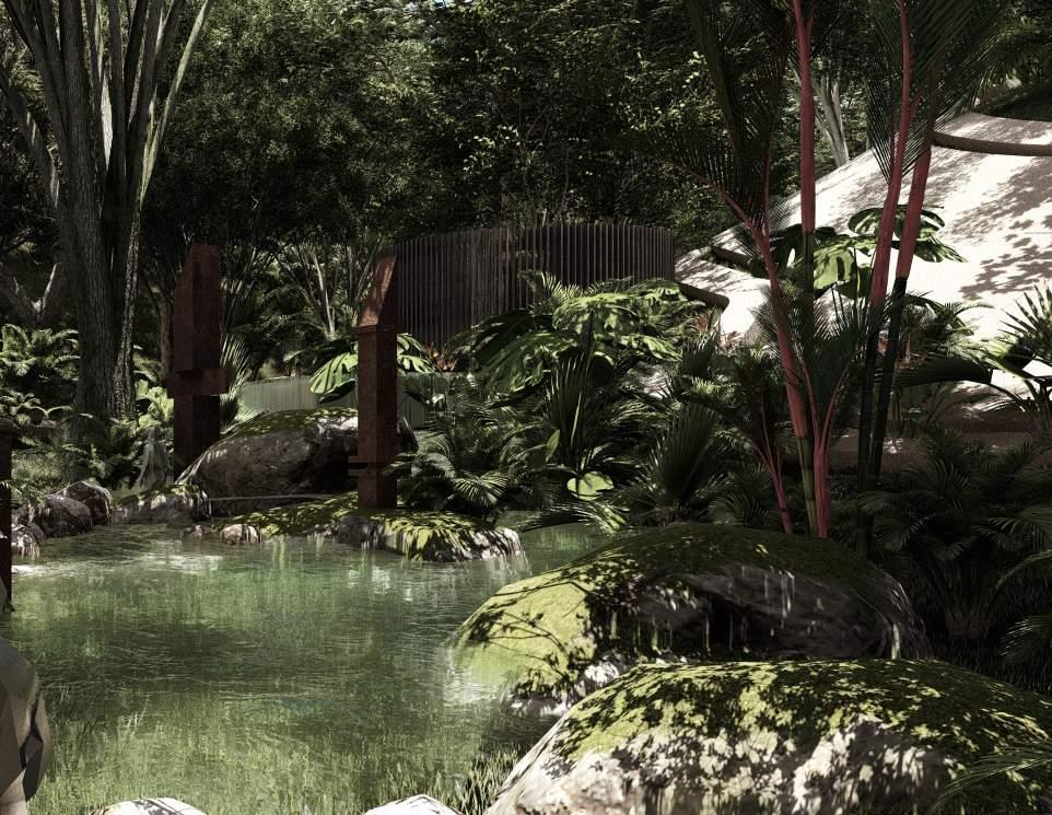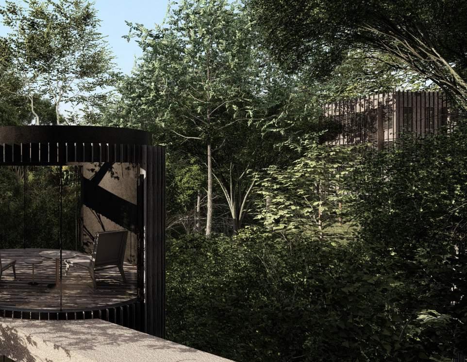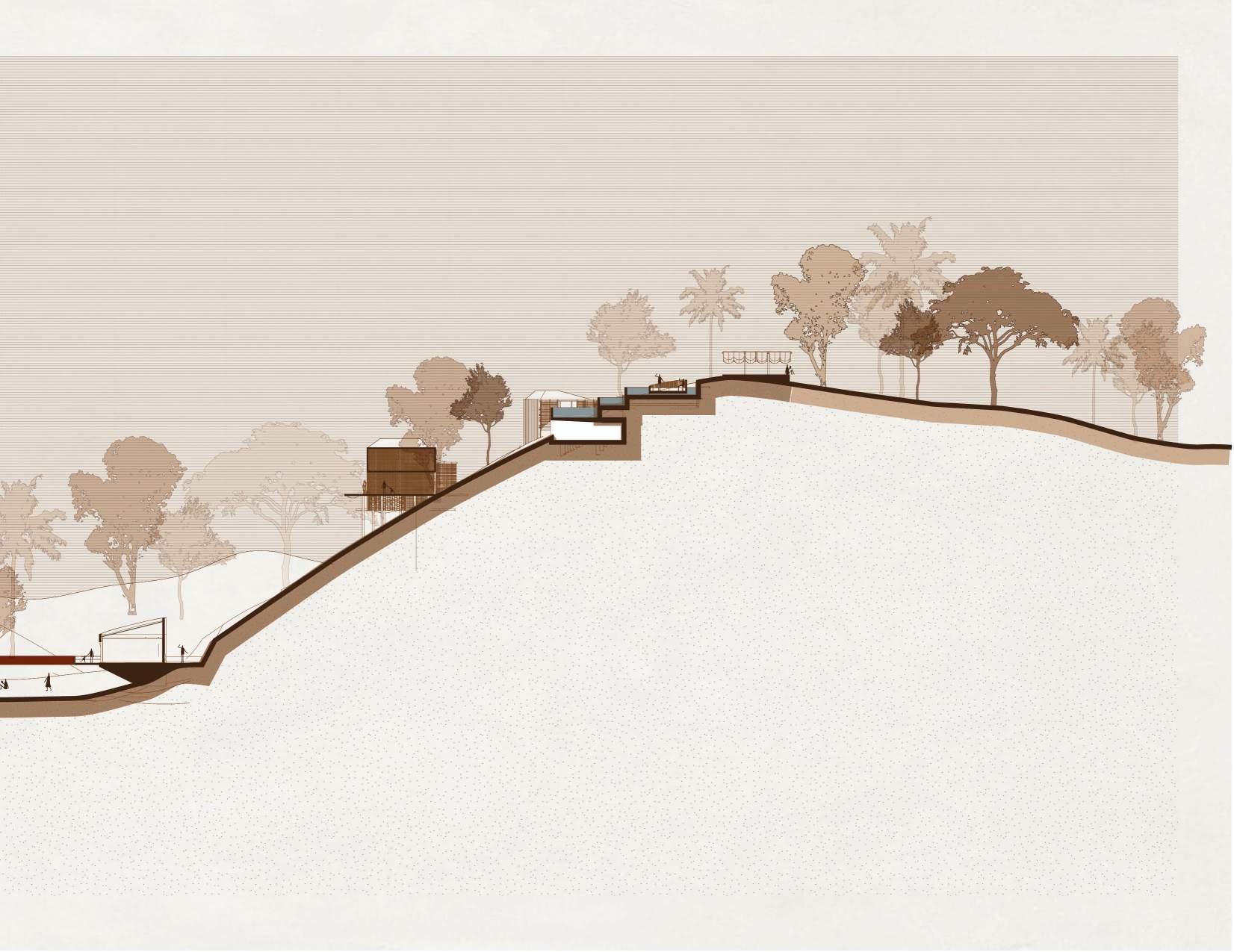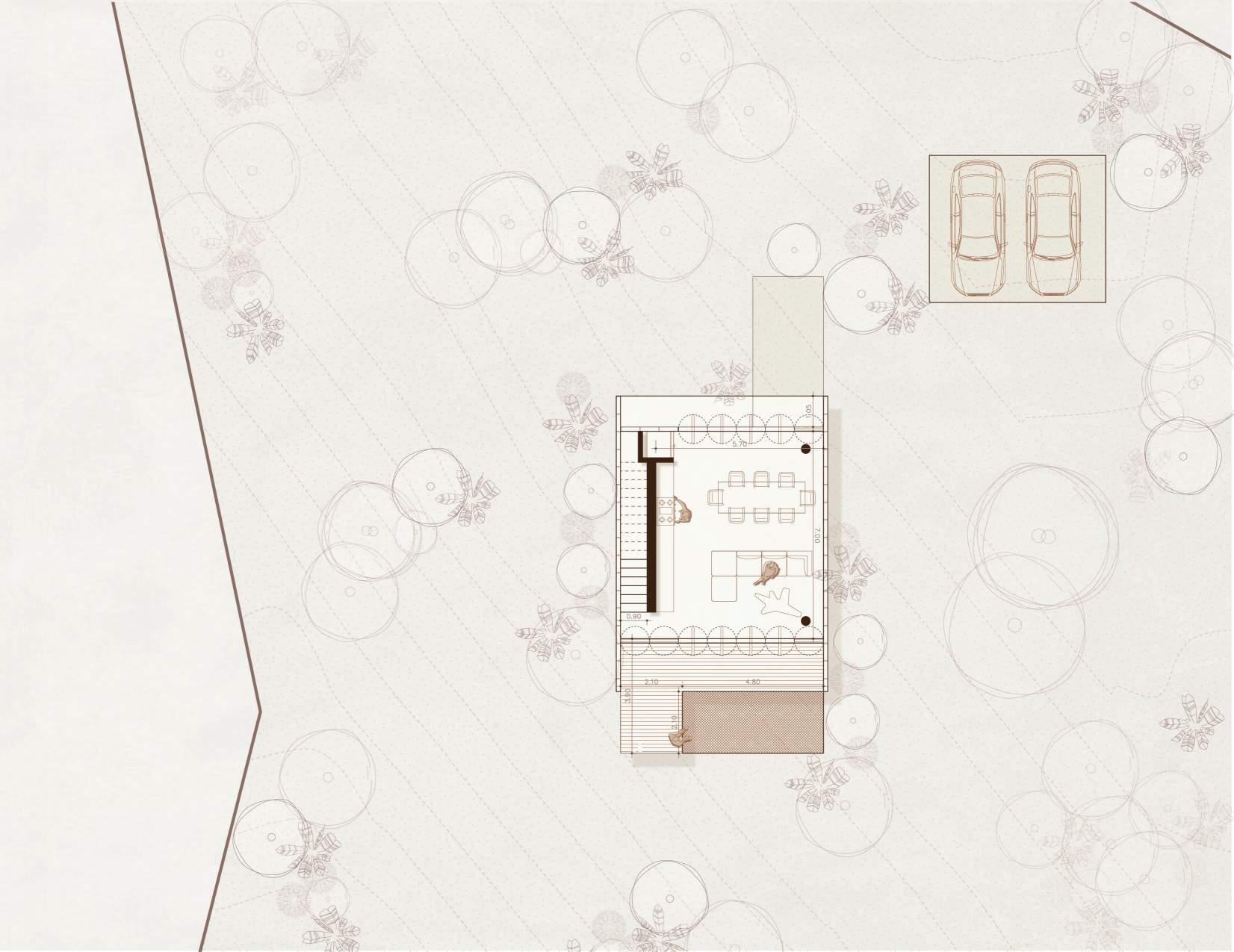 The project explores the concept of grounding ourselves through nature by emphasizing the interconnectedness and shared experiences among different ecosystems. It seeks to reconnect individuals, such as visitors, residents, and temporary occupants, with their own essence through the various approaches of nature while maintaining a sense of simplicity. These approaches manifest as diverse landscapes that share a common core and evolve as one journeys through the site.