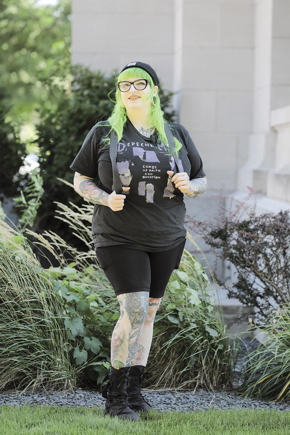 “Honestly it’s been the same since high school. I like what’s comfortable, I live in band t-shirts, sometimes I’ll grab something from doing hair and fashion shows.”