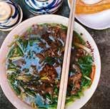 The national dish, pho, a delicious broth of spices, herbs, chilli, soy shoots, lime and beef slices, is actually eaten for breakfast. There’s none better than at shabby but charming Pho Quynh