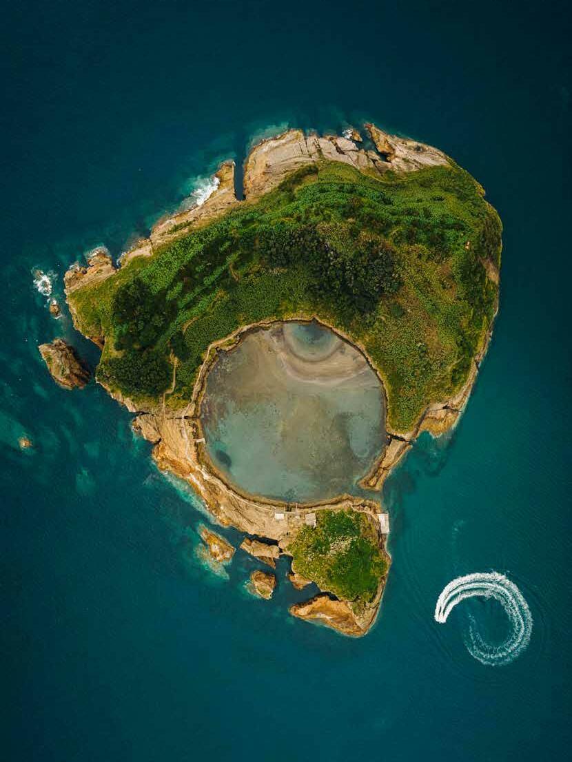 as a consequence, a lush eco-paradise. The islands have not been dubbed the ‘European Hawaii’ for nothing: there are over 26 active volcanoes on the Azores, eight of which are underwater, but there hasn’t been a major eruption since 1957. The result is undulating hills wrapped in dense forests, punctuated by hot springs, geysers and majestic calderas (crater lakes) rising over dramatic black beaches.