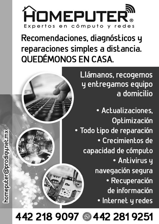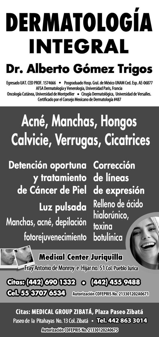 442.871.6666 vozdejuriquilla@gmail.com Diciembre 2022 Edición 205 442 222 8563 / 442 140 7801 REFACCIONES ORIGINALES GARANTÍA POR ESCRITO GRACIAS a nuestros AMABLES CLIENTES por su preferencia desde 1980 en Ciudad de México y sucursal en QUERÉTARO desde 2004 ATENCIÓN Y HONESTIDAD Reparación de refrigeradores lavadoras, Secadoras y centros de lavado en todas las marcas SERVICIO DIRECTO 442.152.3269 Matemáticas Lectura Inglés Impulsa el aprendizaje de tu hijo Visita nuestra página web Visita página web TERRENOS EN VENTA LOMAS DE JURIQUILLA 442 157 9797 442 343 2476 INFORMES PÁGINA 2 a la 7 COLEGIO SUNHILLS VALLEY Querétaro: O : 442 254 34 50 Tel. 442 194 63 22 Productos de alta calidad autorizados ante la Secretaría de Salud FUMIGACIÓN, DESINFECCIÓN, SANITIZACIÓN Y CONTROL DE PLAGAS a Tecnología Calidady Servicio 30 AÑOSDE FUMIGACIÓN Y CONTROL DE PL AGAS · Servicio profesional, eficiente y rápido · Garantía en todos nuestros trabajos · Utilizamos productos de calidad internacional Para presupuesto y ofer tas decembrinas manda un Whatsapp. ¡Con mucho gusto te atenderemos! 4 42-171-7273 Más de 15 años de experiencia nos avalan