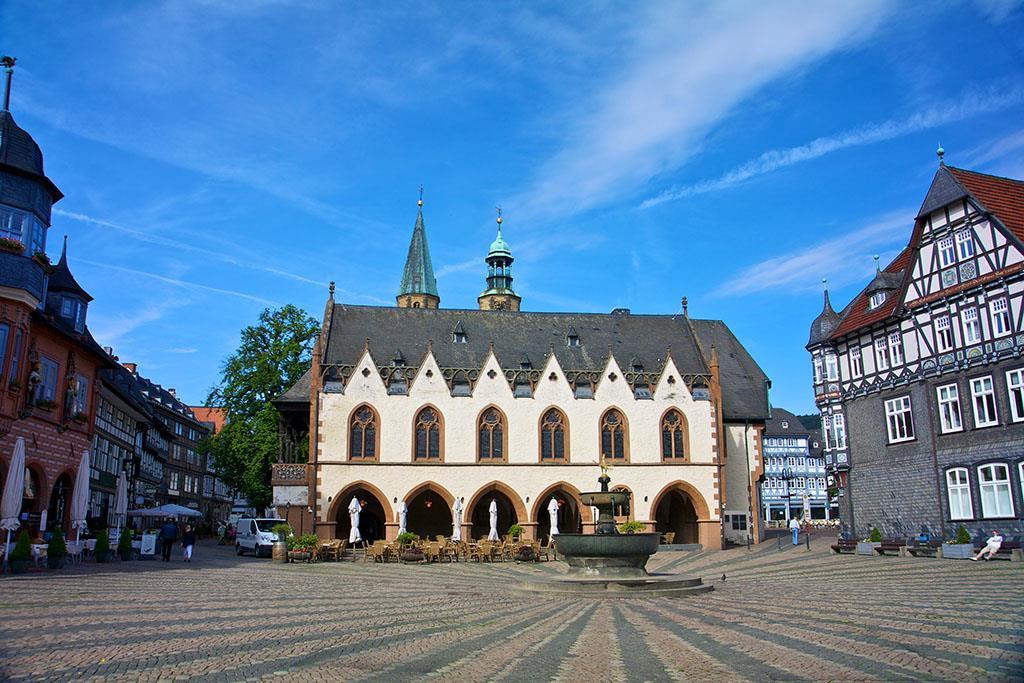 Op het marktplein zie je meteen het summum van de lokale architectuur. In het midden staat een fontein met daarop het embleem van de stad, een gouden adelaar met errond imposante gebouwen. Het stadhuis trekt meteen de aandacht, maar de belangrijkste toeristische trekpleister is misschien wel het beroemde klokkenspel in de gevel van het huis op markt nr. 6. Die klok luidt dagelijks om 9u, 12u, 15u en 18u en dan komen er houten figuurtjes tevoorschijn die het verhaal van de mijnbouw in Goslar uitbeelden