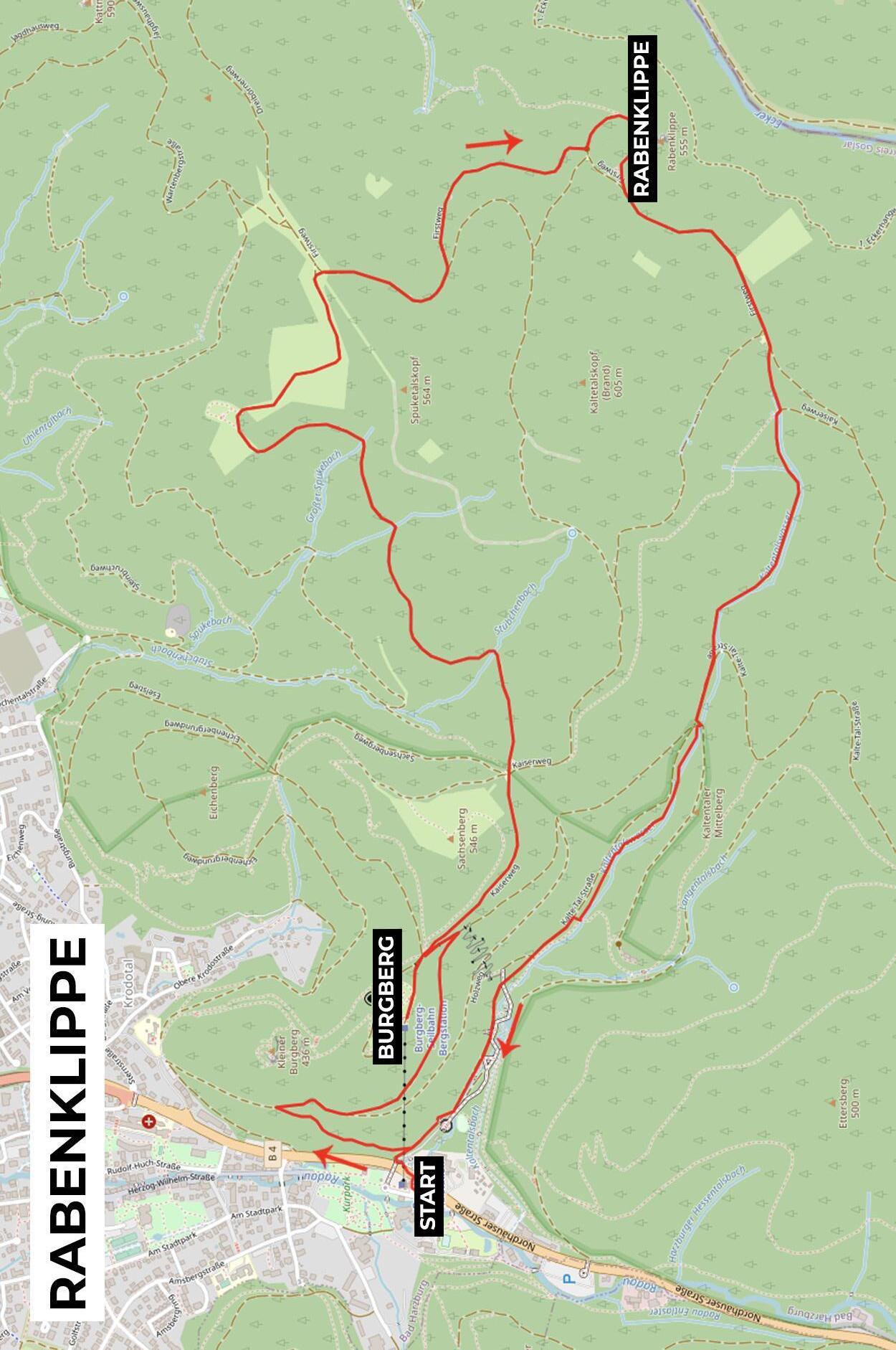 Deze route gaat onder andere naar de Großer Burgberg, die je met de kabelbaan kan bereiken, en naar het lynxenreservaat op de Rabenklippe. Hier kan je deze grote katten van dichtbij bewonderen. Op woensdag en zaterdag worden ze openbaar gevoederd (controleer de actuele tijden op https://www.luchsprojekt-harz.de). De wandeling biedt nog andere hoogtepunten zoals een bezoekje aan de ruïnes van Harzburg en een ritje met de kabelbaan Burgberg.