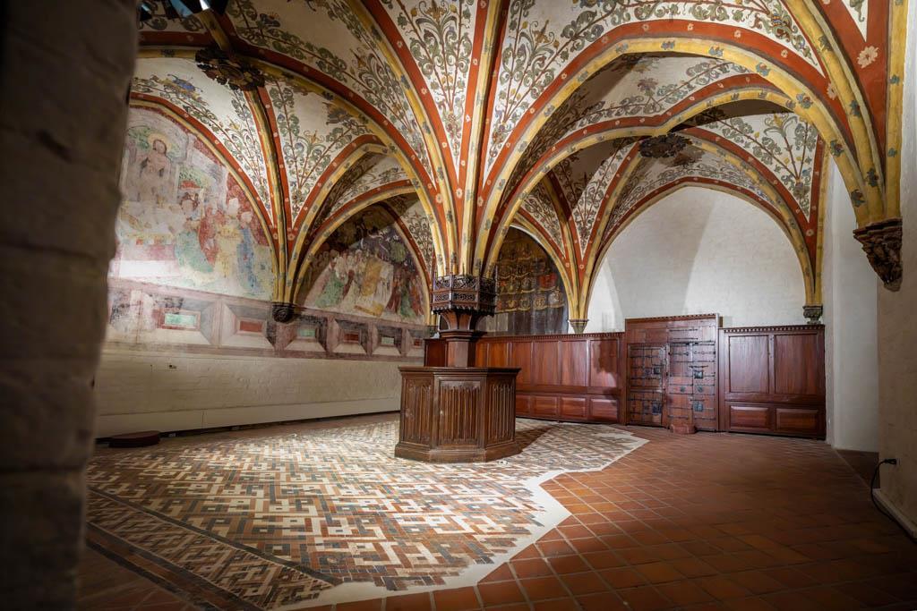 De Frans-gotische St. Marien-Kirche heeft twee torens van meer dan 120 meter hoog (die je kan beklimmen) en het hoogste gewelfde bakstenen plafond ter wereld, dat prachtig versierd is.