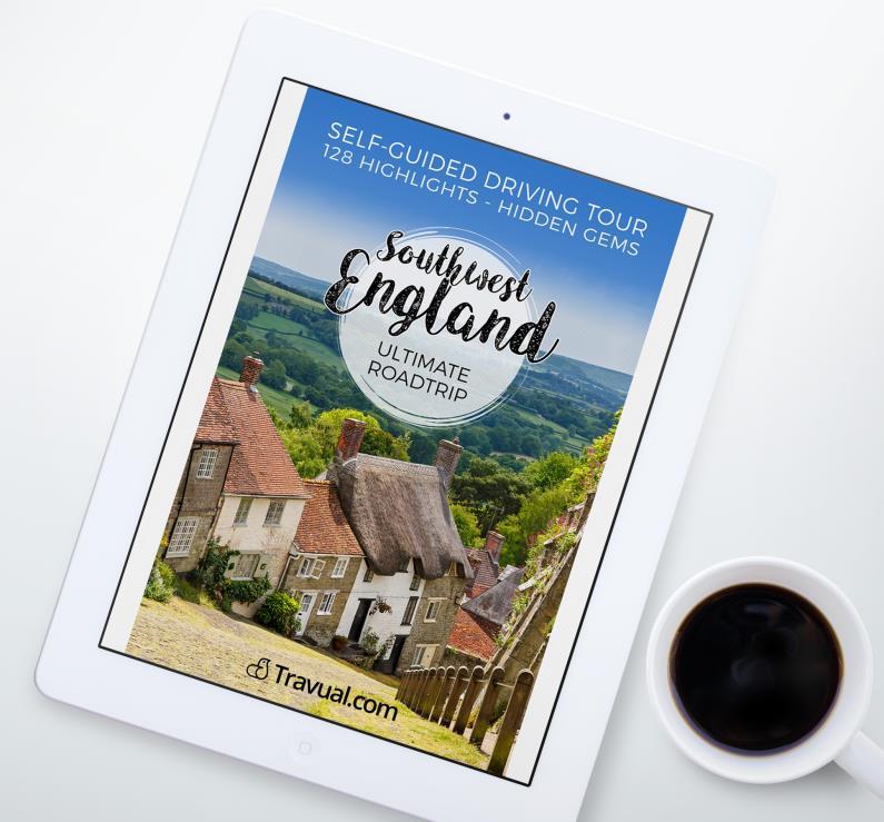 Buy the complete travel guide (PDF – 119 pages A4, easy to print or read on tablet), and explore more than 128 highlights of beautiful Southwest England, with lots of practical information and tips by locals.