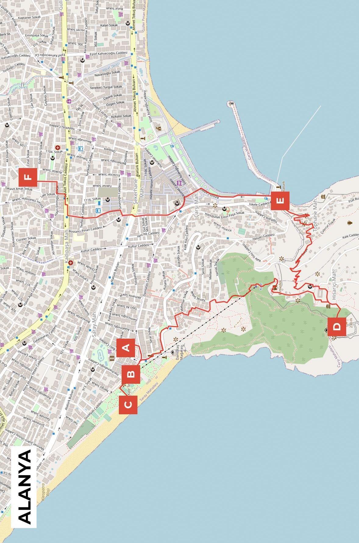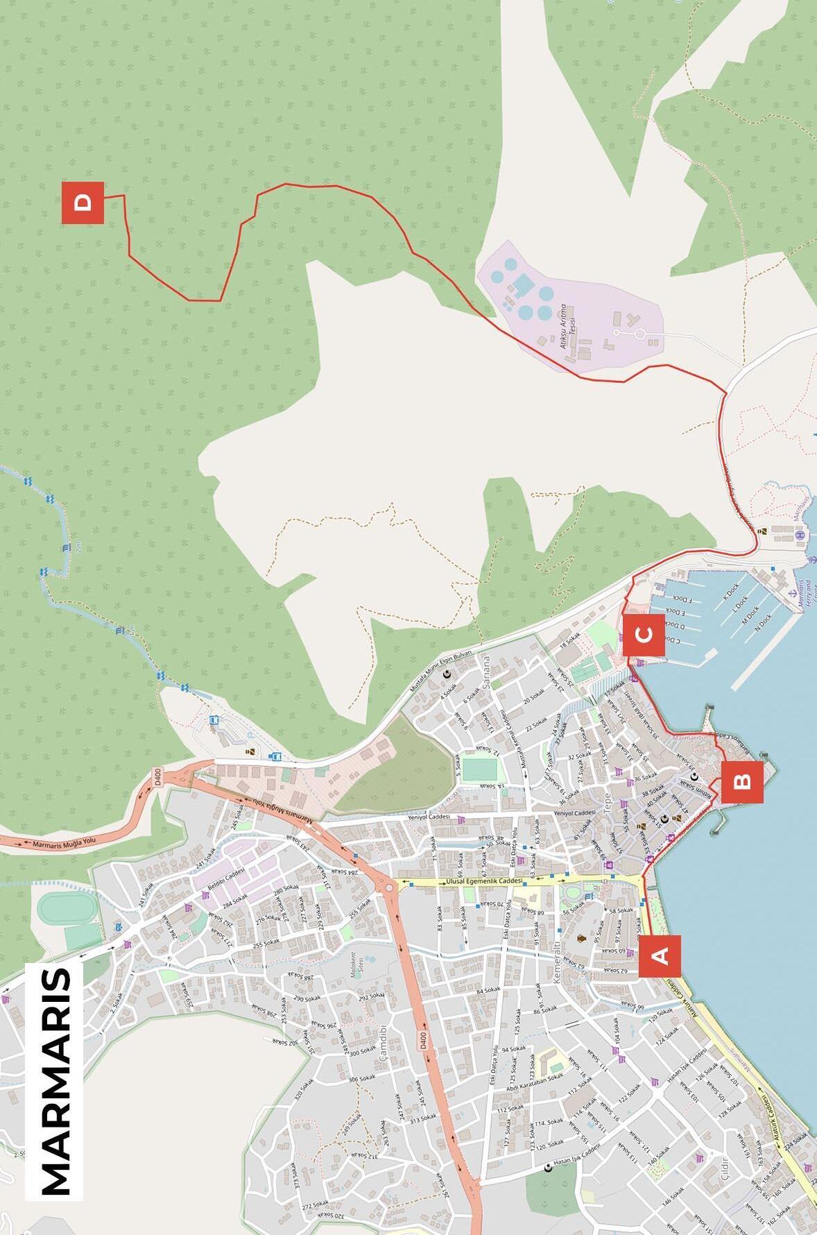 • Beginpunt: Bij de vuurtoren van Bodrum Marina (zie ligging op de kaart)