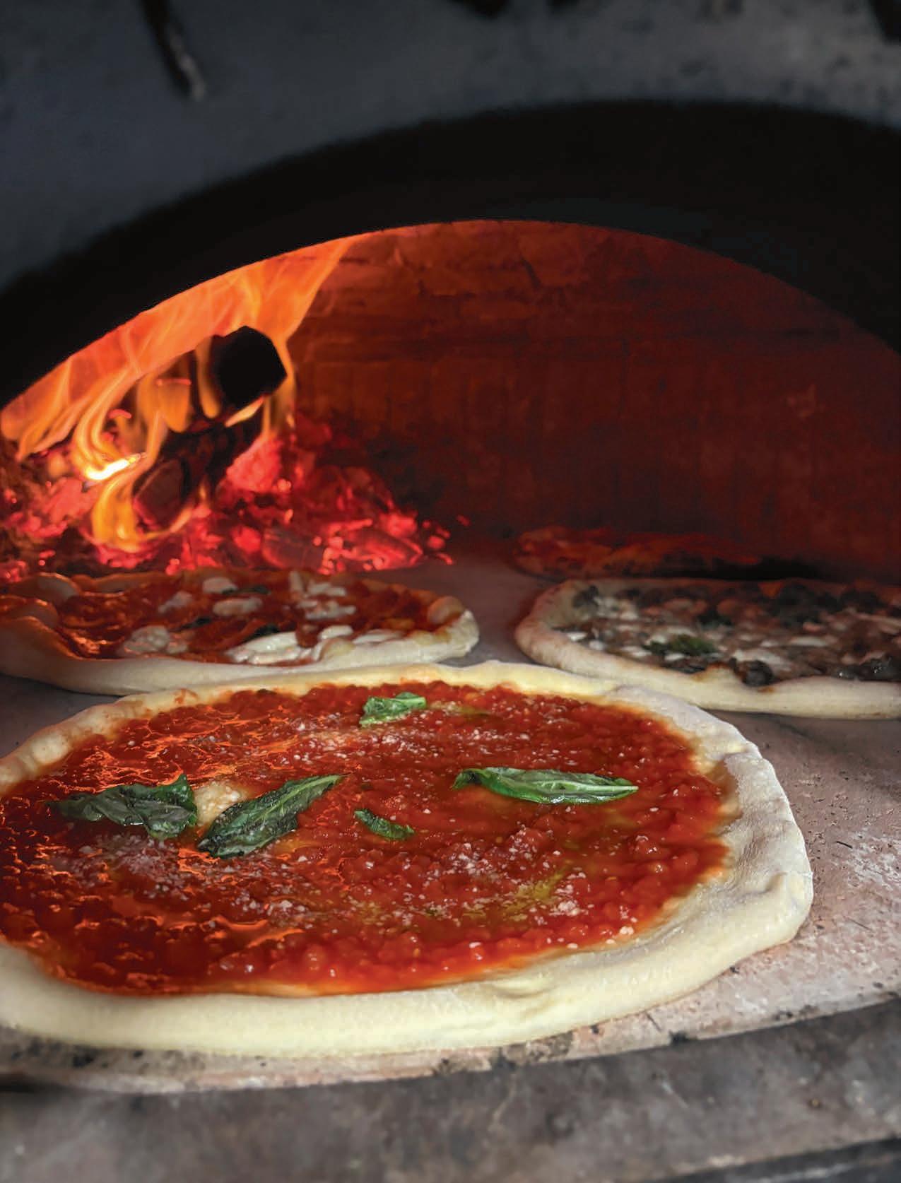 Opposite page: 081 Café serves a variety of authentic brick oven pizzas. This page, clockwise from top left: Domenick Esposito and his sons Sonny and Joseph (pictured) own 081 Café. The restaurant is located at 604 N Maple Ave. and offers outdoor seating along with a cozy and inviting dining room experience.