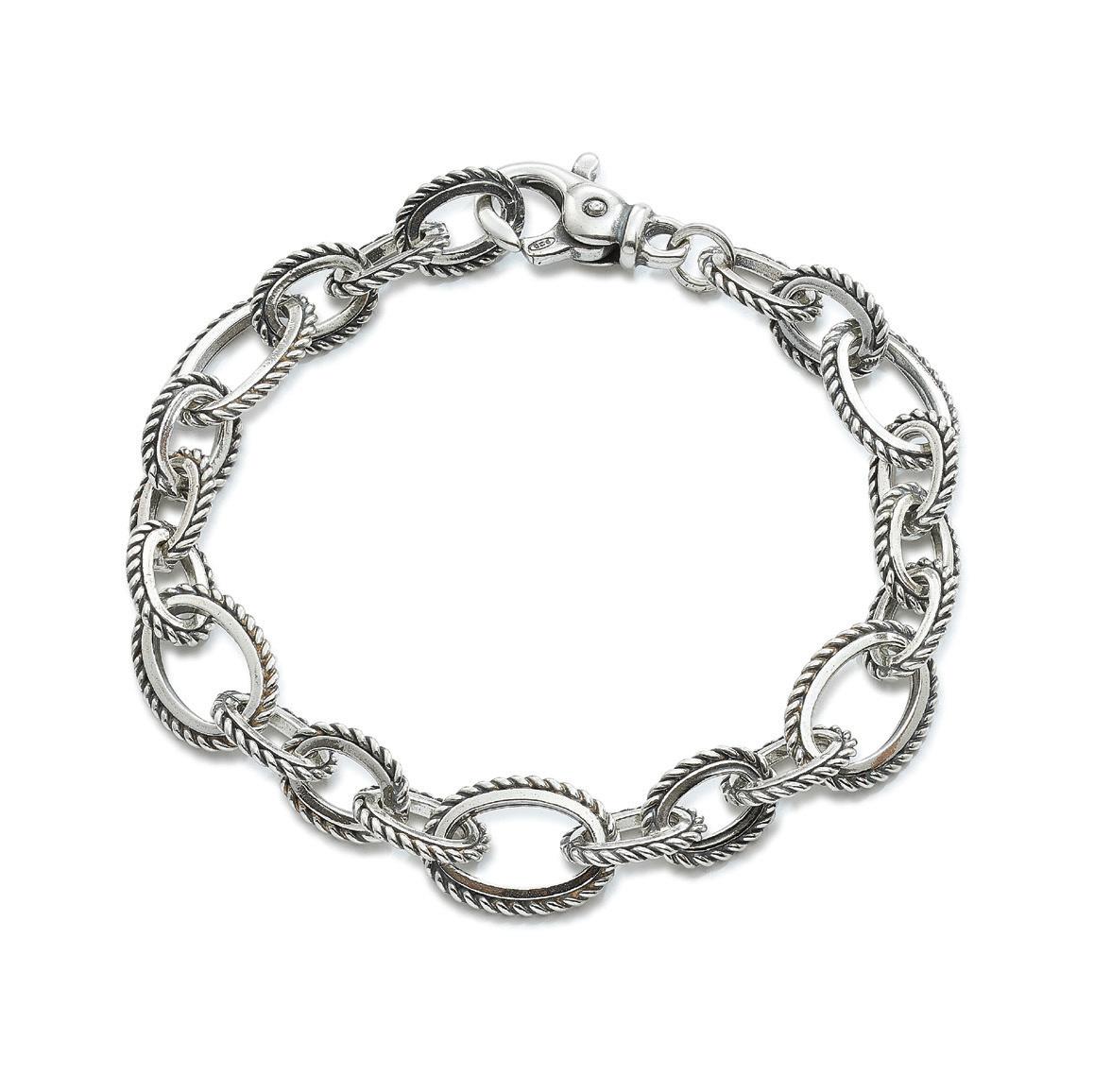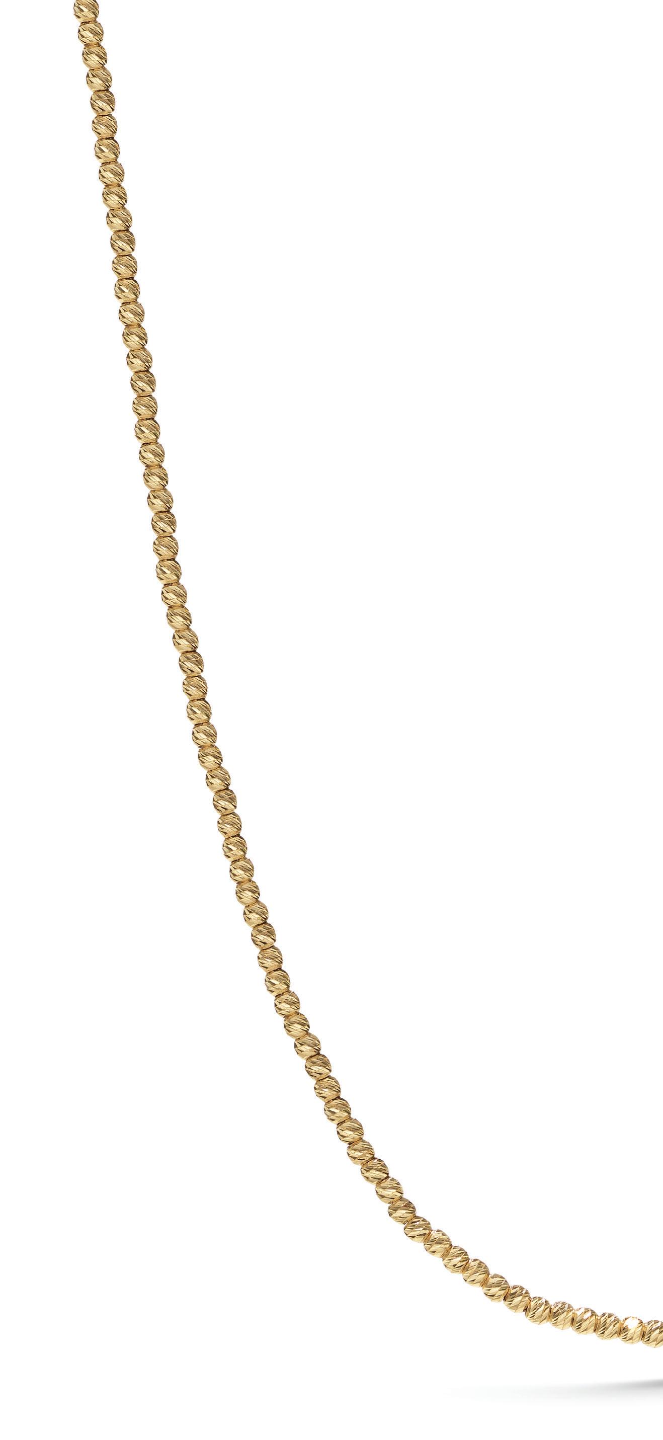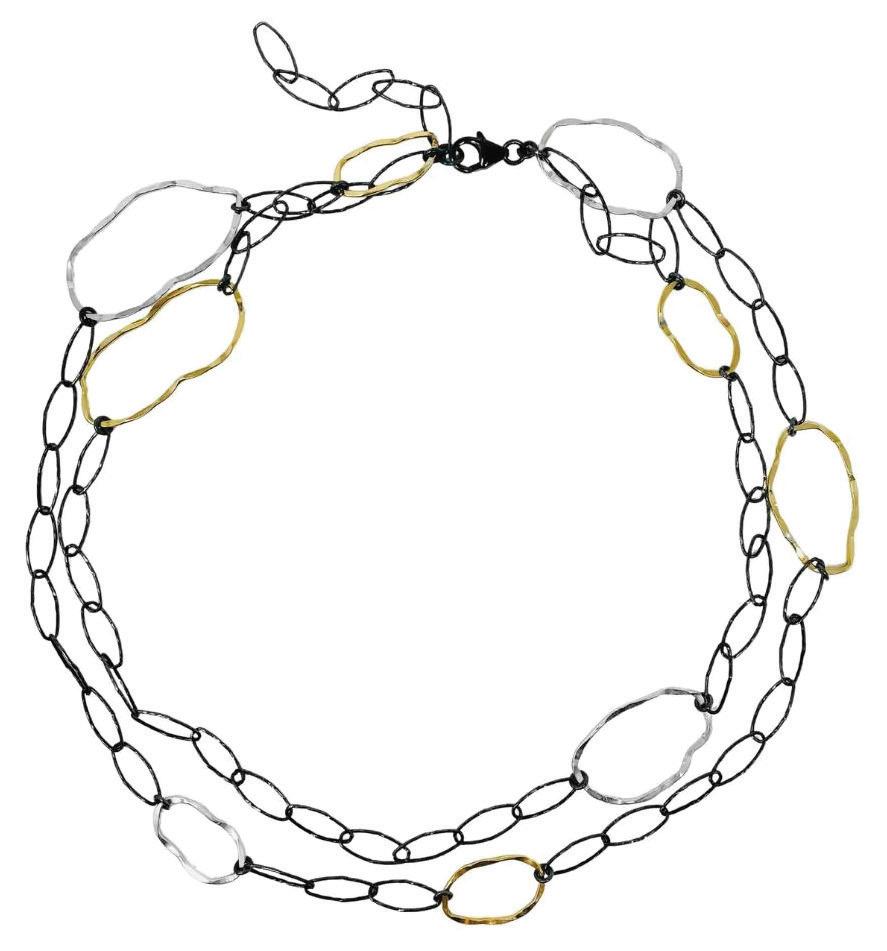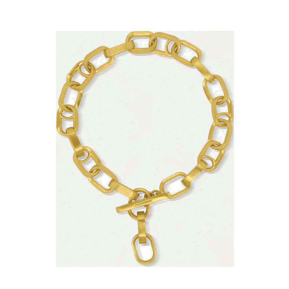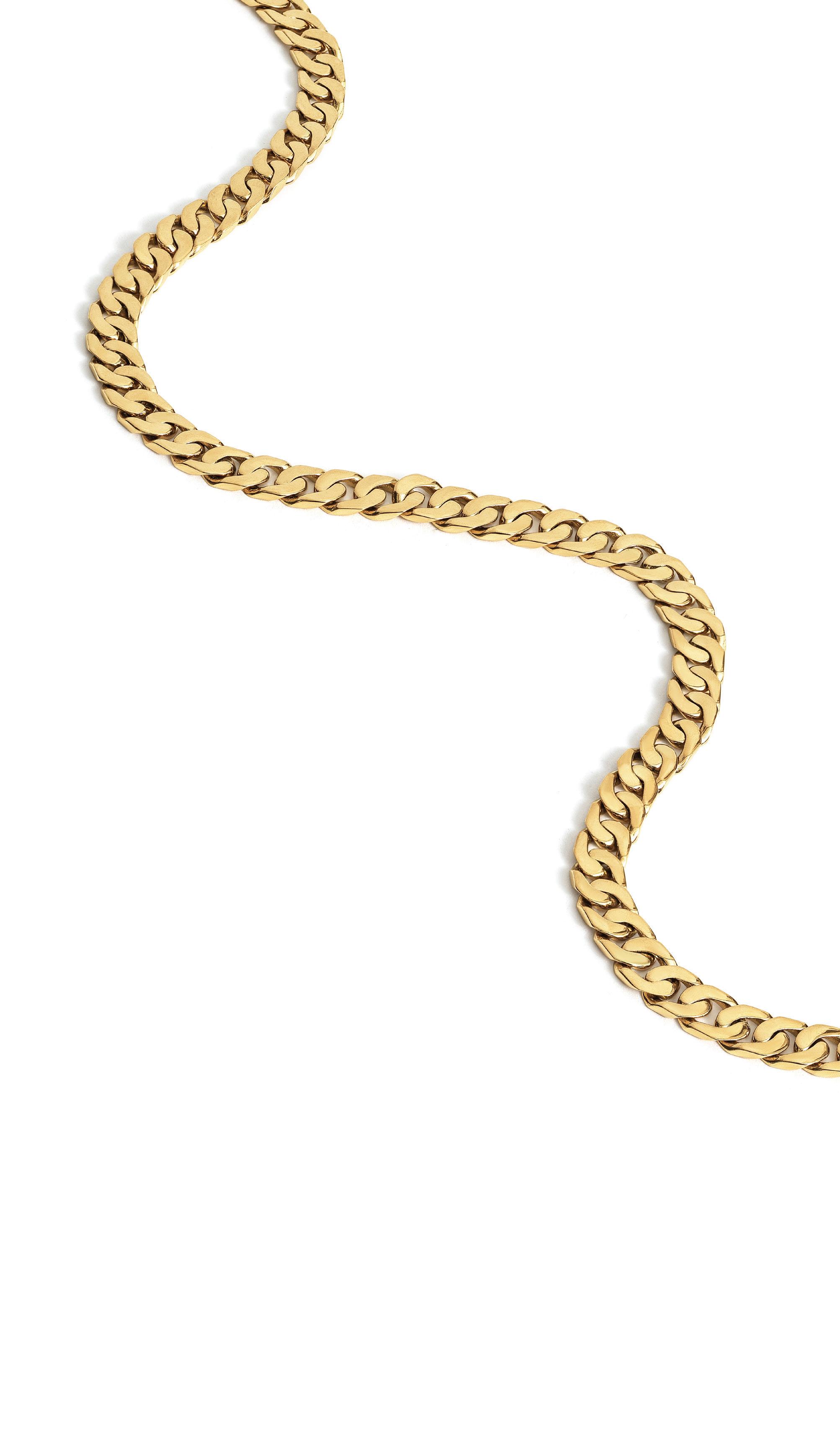 A. Box chain bracelet, $775. B. Oval link bracelet, $1,075. C. Bead station necklace, $225. D. Bar and bead station necklace, $350. E. Paperclip link bracelet, $595.