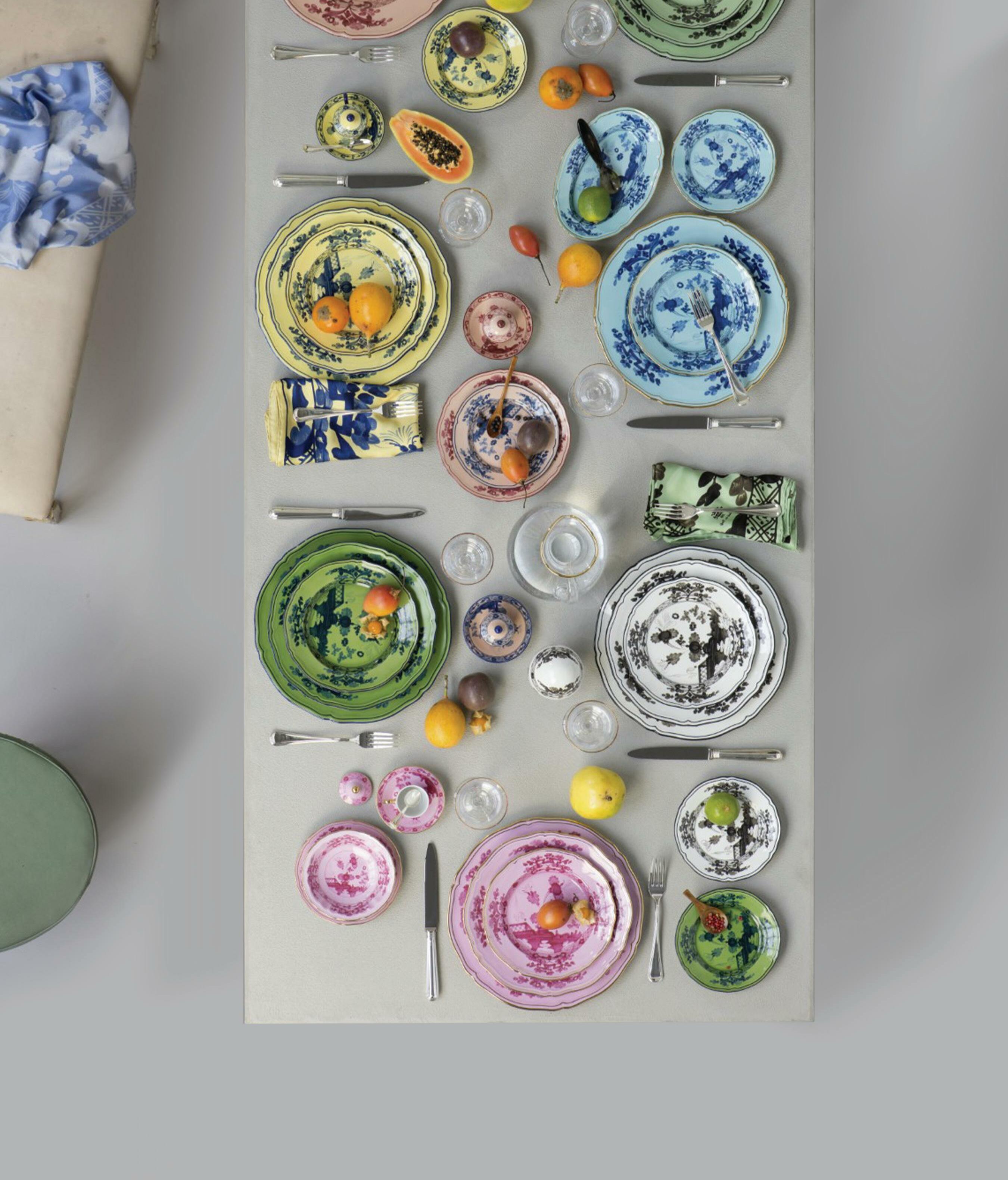 Decorating a table using items you love adds a personal touch to the dining experience. An outdoors enthusiast, Cordelia de Castellane brings elements of nature and the forest to her table. “I set out pumpkins and squash from the vegetable garden, flowers from the garden, walnuts and pine cones,” she says. China with colorful prints is also a favorite that adds visual interest. “I don’t think I could do without [prints], either at home, on me or in my collections,” she says. A hearty autumn meal isn’t complete without a sweet exclamation point. A heartwarming crème caramel dessert, courtesy of de Castellane’s friend and business partner Sanaz Degany, will be a hit with all your guests, especially when presented in a rustic wicker basket and glass serving dish.