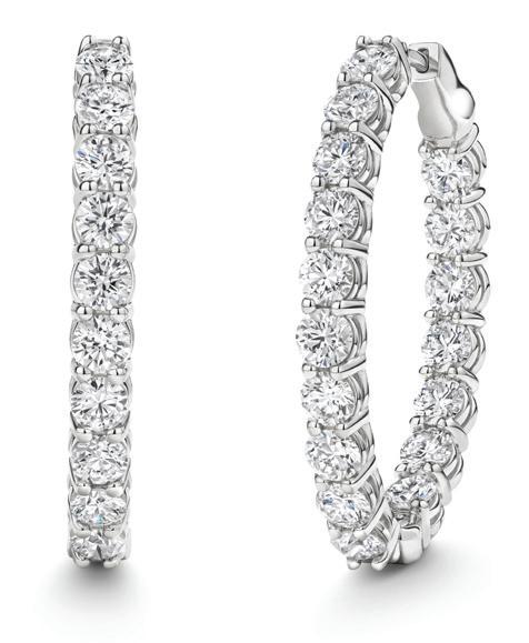 A. Diamond clover pendant in 14K white gold, $1,025. B. DELICATO Pavé diamond dog tag pendant on 17- to 20-inch adjustable chain in 14K white gold, $1,025. C. Diamond cross pendant, $1,700 (chain sold separately) D. Oval diamond eternity ring 5.30 cts. in platinum, $29,400. E. Emerald-cut diamond ring 1.64 cts., $5,450. F. Diamond eternity ring 5.28 cts. in platinum, $32,895. G. Diamond channel set eternity ring 2.35 cts., $9,775. H. Diamond solitaire earrings 4.03 cts. in platinum, $59,500. J. Diamond line bracelet 11.48 cts., $39,250. K. Mixed-cut diamond bracelet 20.20 cts., $70,000.