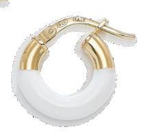 E. White enamel hoop earrings in gold plated sterling silver, $30. F. Squared hoop earrings, $295. G. Squared hoop earrings, $450.