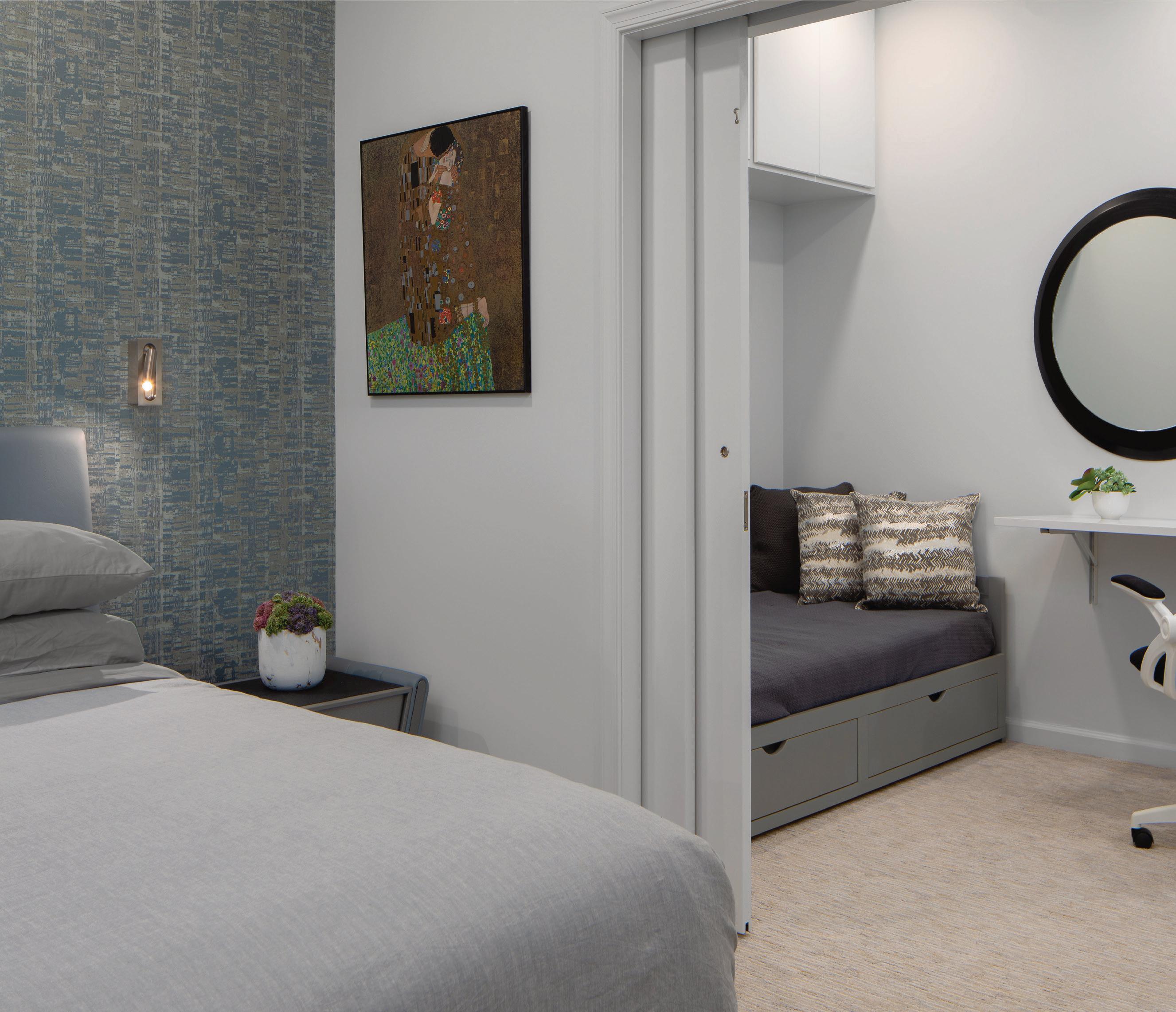 Enjoy, too, the promotion of a Long Branch condominium from summer beach retreat to full-time home (page 34). In its kitchen a custom banquette now accommodates more hungry eaters, and a peninsula has been given a more kid-friendly height. Numbers of rooms and bathrooms have also been increased, making washing up from the beach a breeze. (Do you sense an agenda here? Four frequently visiting grandkids!)