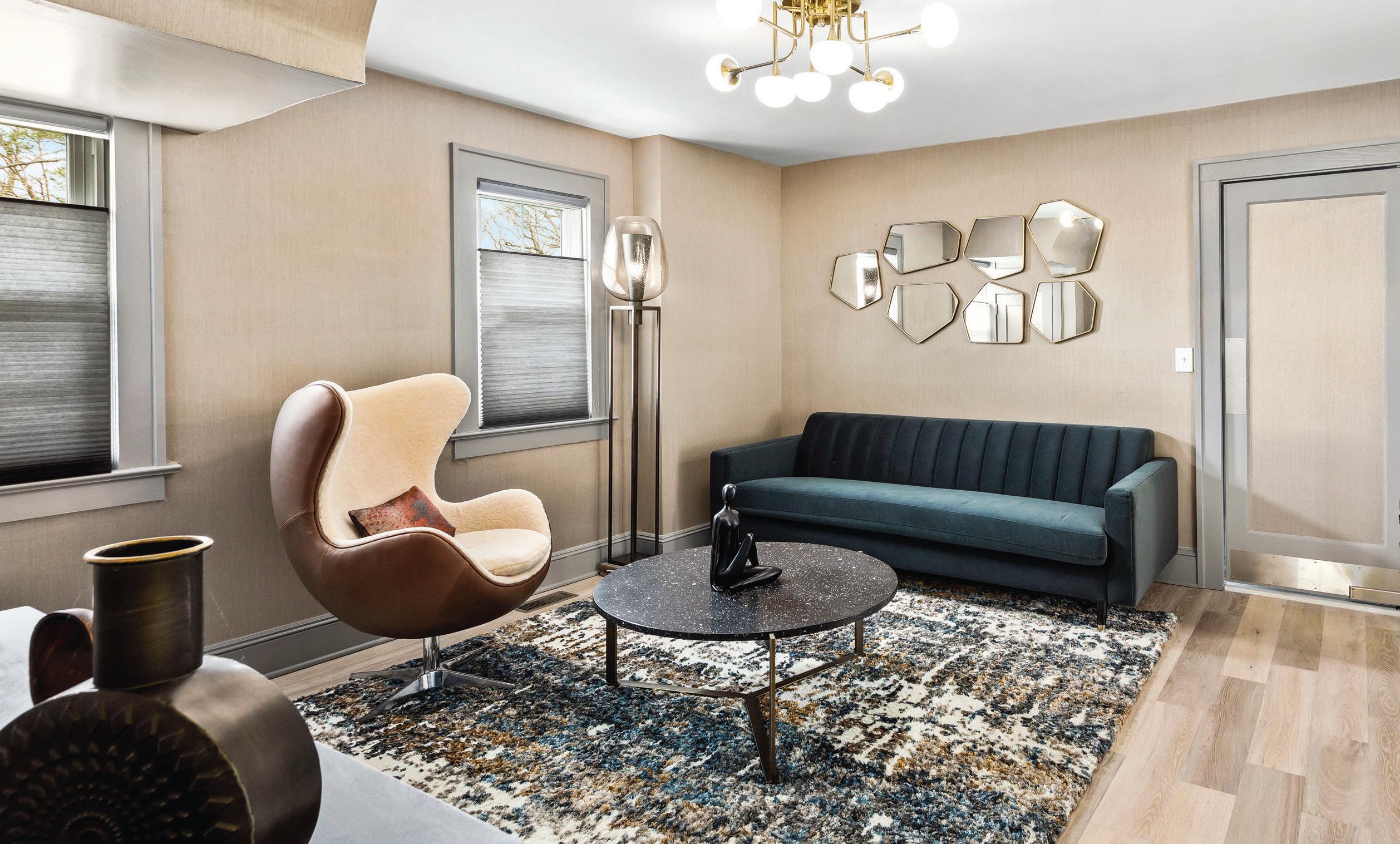 Finishing a West Allenhurst home in a modern industrial farmhouse style—that was the challenge facing another designer (page 40). This is a doctor’s home, and the design pro provided not just what the doctor ordered, but what he didn’t realize would delight him—an iron-and-glass chandelier, for instance, that resembles a giant molecule.