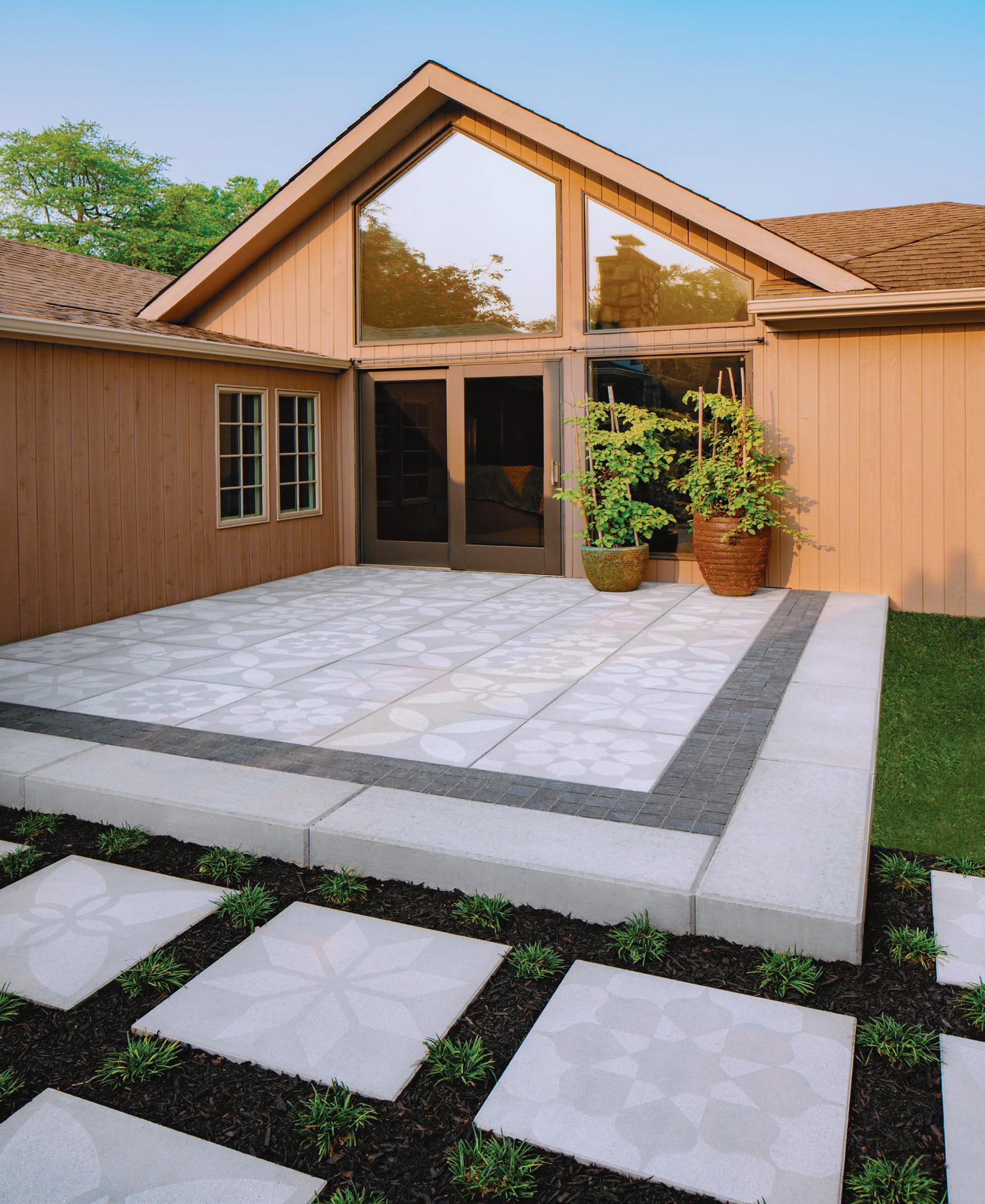 Pavers with a floral design that recalls Moroccan and Spanish tiles beautify an Interlaken backyard.