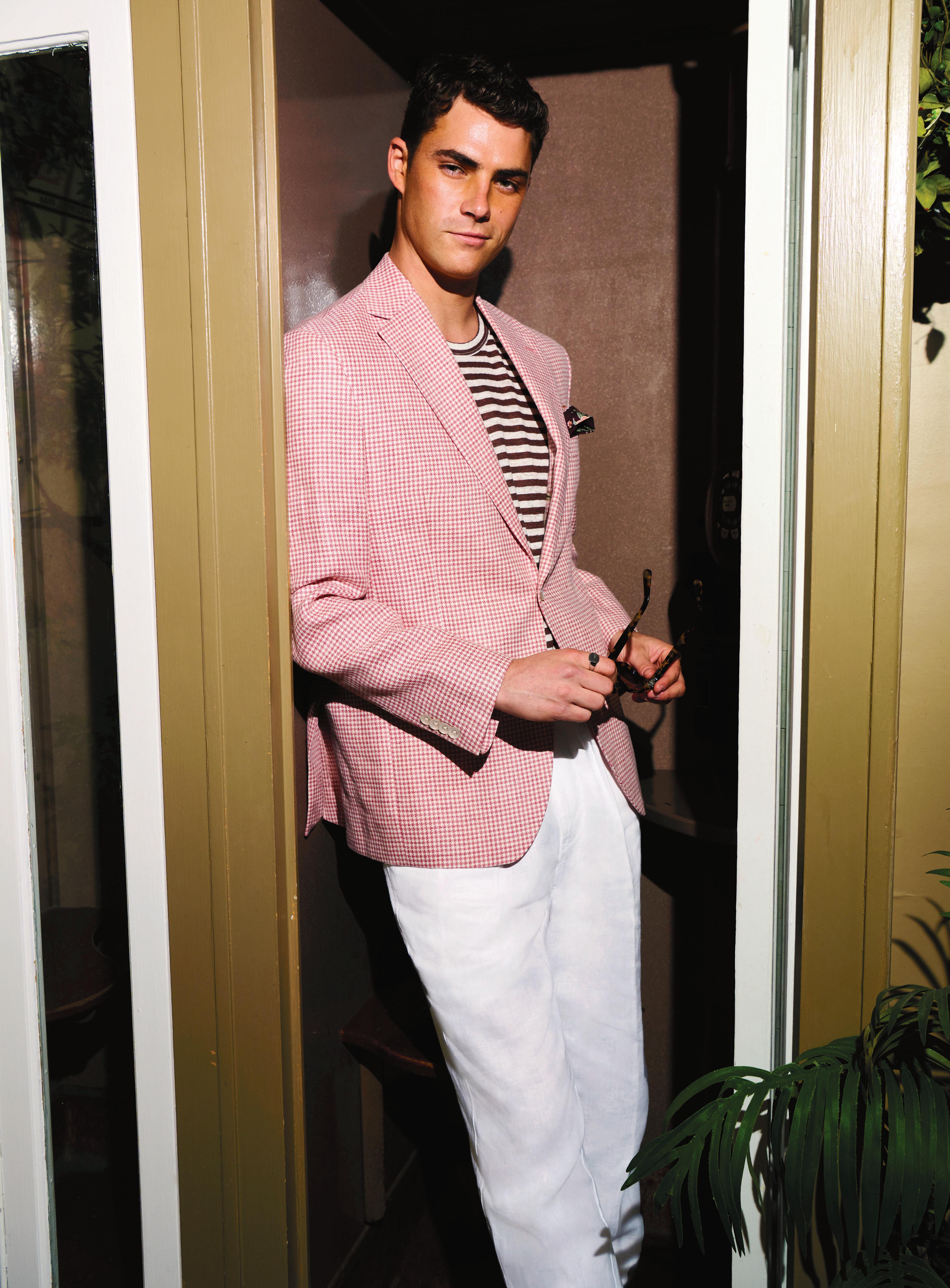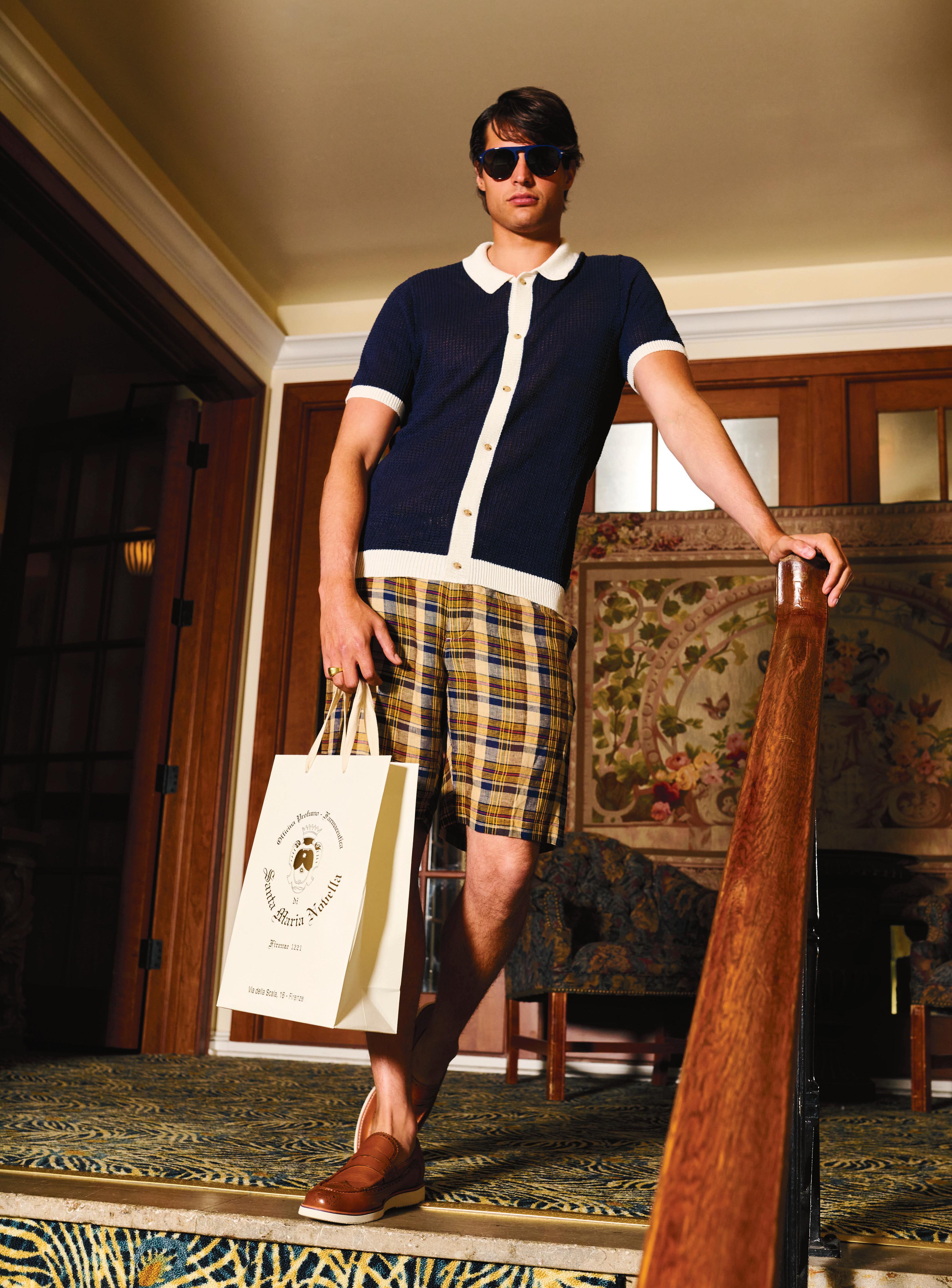 On Cole: Onia knit polo, J. McLaughlin shorts, Jared signet ring, Persol sunglasses, and Marc Nolan shoes. Photography by Jeffrey Rose; styling by Michael Macko; grooming by Wesley O’Meara/Honey Artists; models: Spencer Nauman/EMAIL DEAN@BOSANDCO.COM