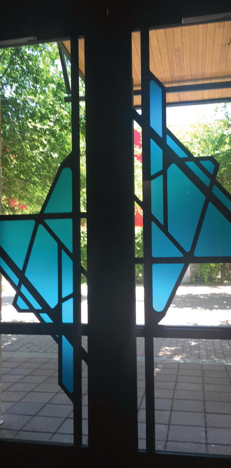 The decorative screens at the mechanical pen facing the playground— as well as at two doorways around the Diamond building—pick up patterning from the Mueller airfield map. Each project presented an invitation to study its setting and respond with a design that would go further than a manufactured solution to create a sense of place. These moments can make an outsized difference in cultivating character without having to customize the entire project.