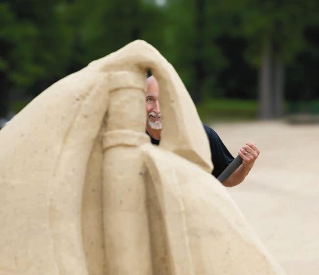 and error—“lots of errors,” he says. He also tips his hat to “the generosity of Master Sculptor Matt Long, who has been providing me with guidance over the years.” Long, of Sand Masters fame, has given Woodard guidance in the best methods of sand carving. Sand has given Woodard many opportunities.