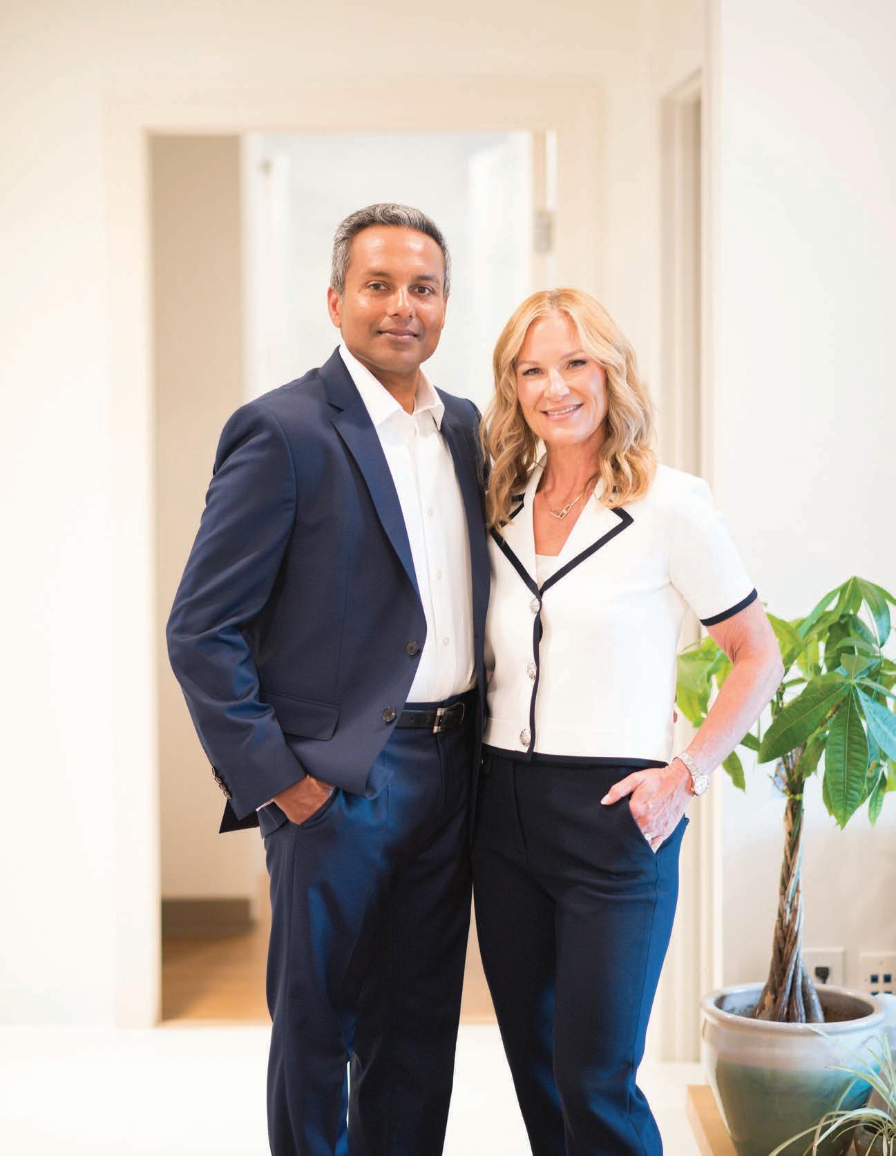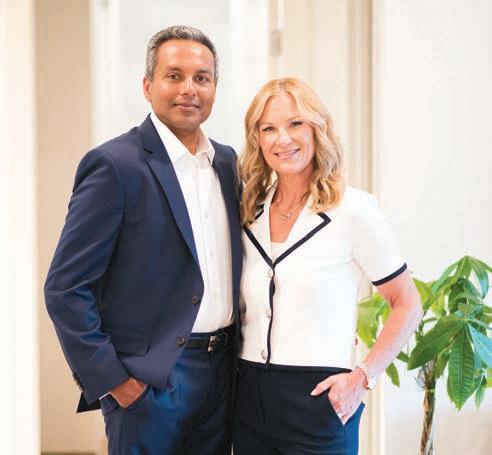 Opposite page, left: Linda Agarwal. Right: Saurabh Agarwal and Linda Agarwal, owners of Salt & Sky Wellness, use ultrasound guided techniques. This page, from left to right: Gosia Narula, master aesthetician; Linda Agarwal CRNA, APRN, owner Salt & Sky Wellness; Michelle Romagnoli DNP, APRN; Gia Youmans, patient care coordinator.