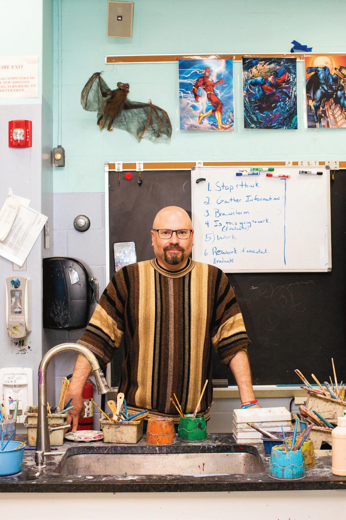 To make me a better teacher, I think back to when I was in school and all the little things my favorite teachers would do that helped me through the day and made me enjoy being there. I work hard to create that environment for all my students. I know for students the days can be long and hard, but the art room can provide some much-needed downtime in a stress-free environment. We have objectives and goals like every other class, but the answers are not so concrete, and everyone can find a place to succeed here. When I help in any way to open those doors for students, I feel I’ve done a great job.